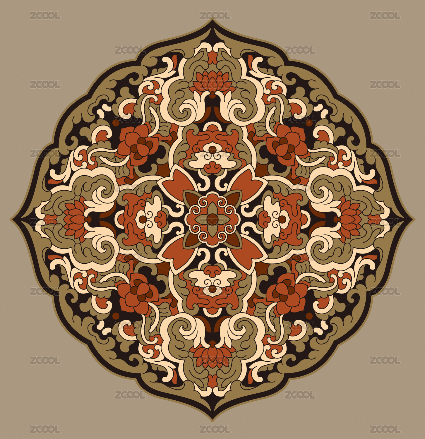 古風(fēng)團(tuán)花和邊框矢量紋樣圖案