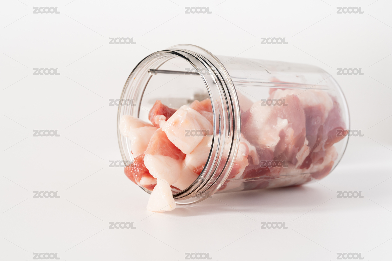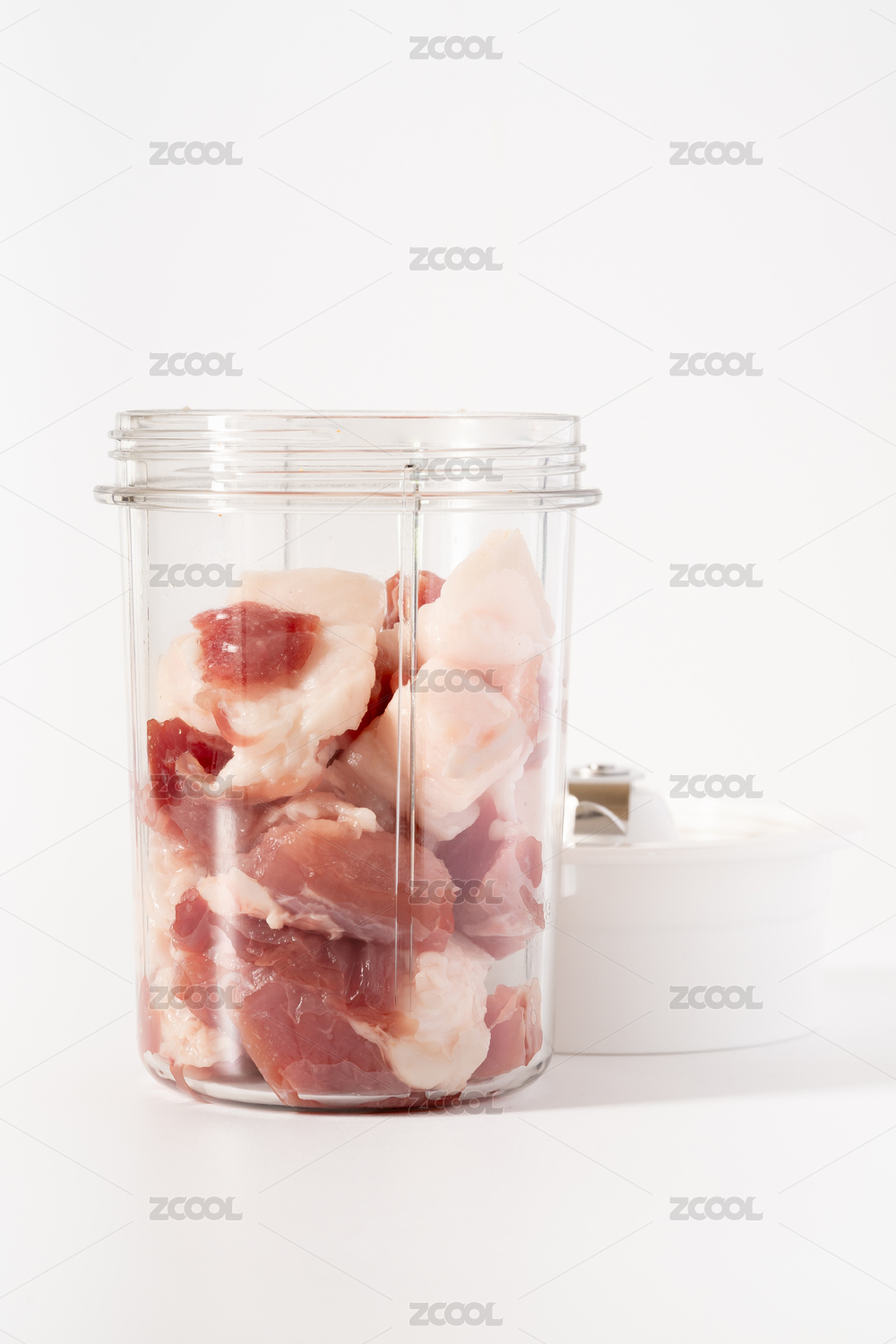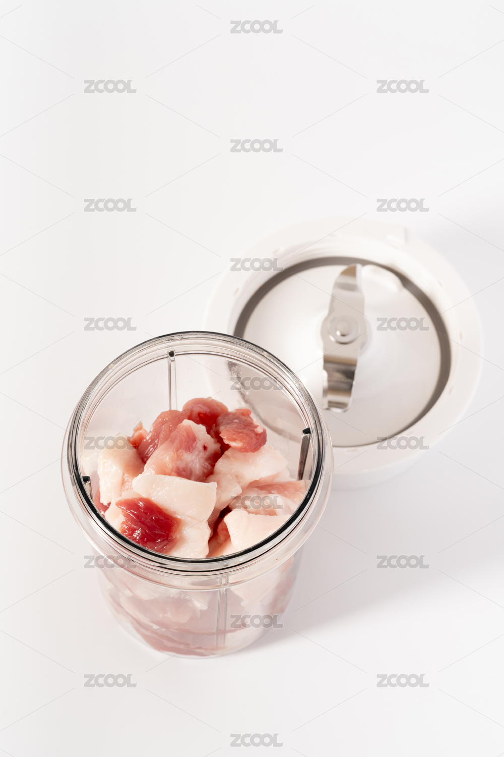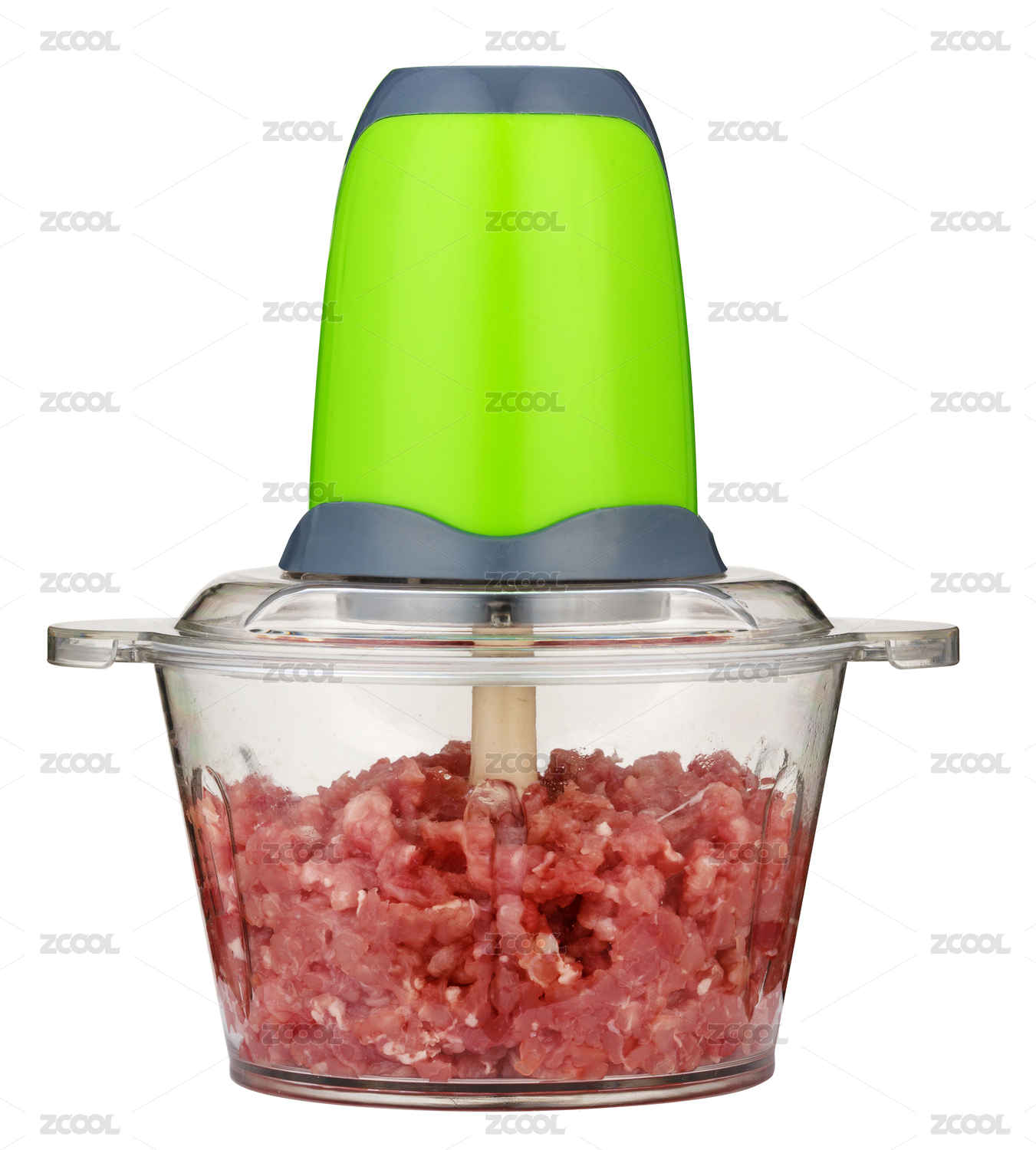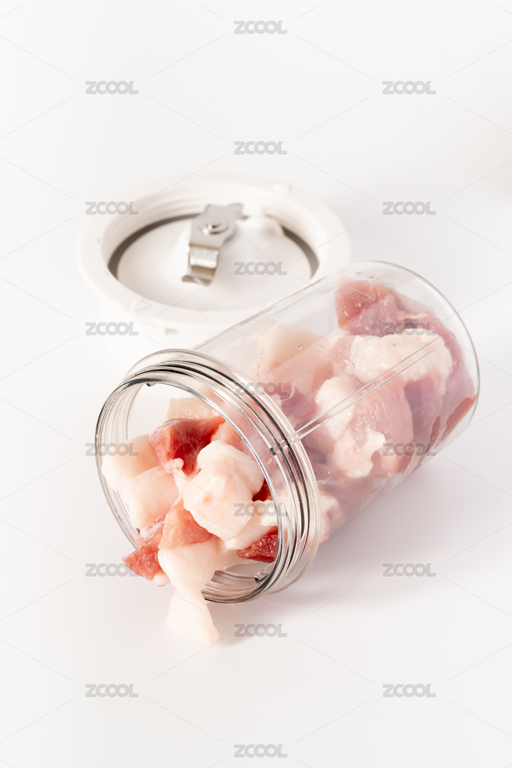 裝了豬肉餡的透明絞肉機(jī)白底圖