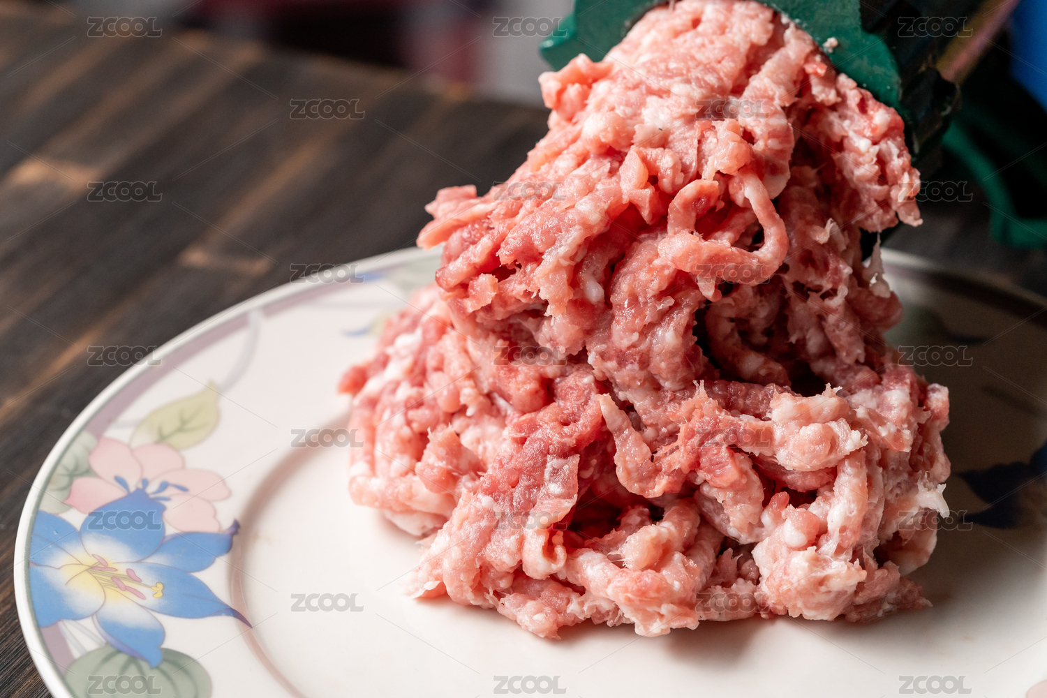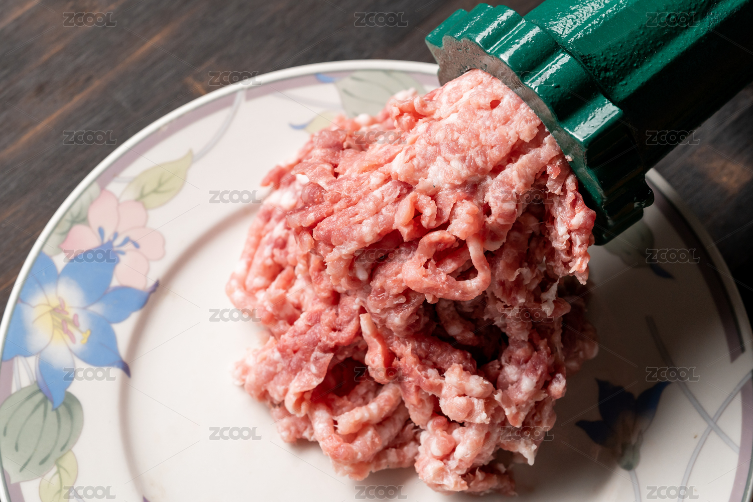 正在使用絞肉機(jī)將新鮮的豬肉絞成肉末