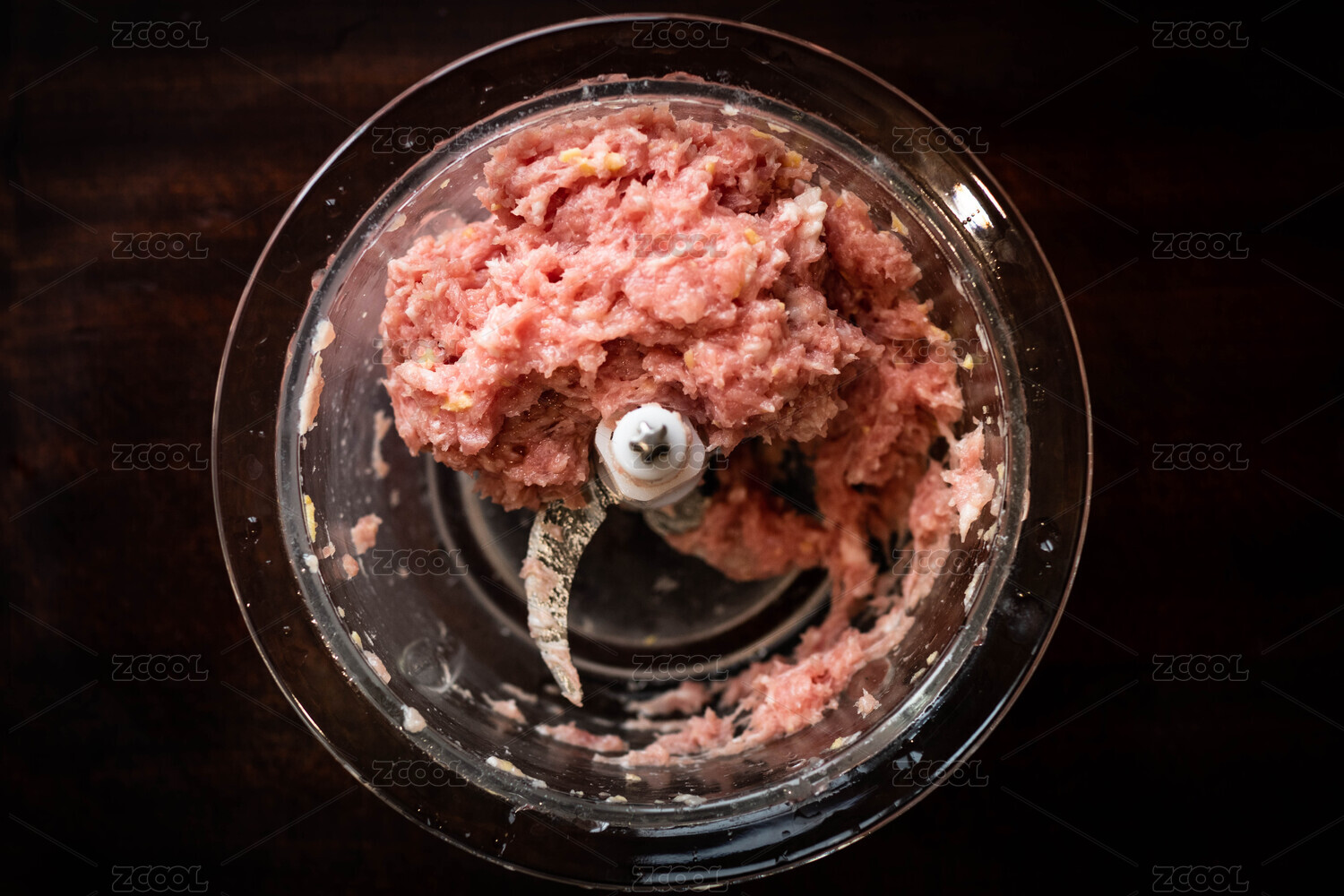 桌子上的絞肉機(jī)和絞出的肉末