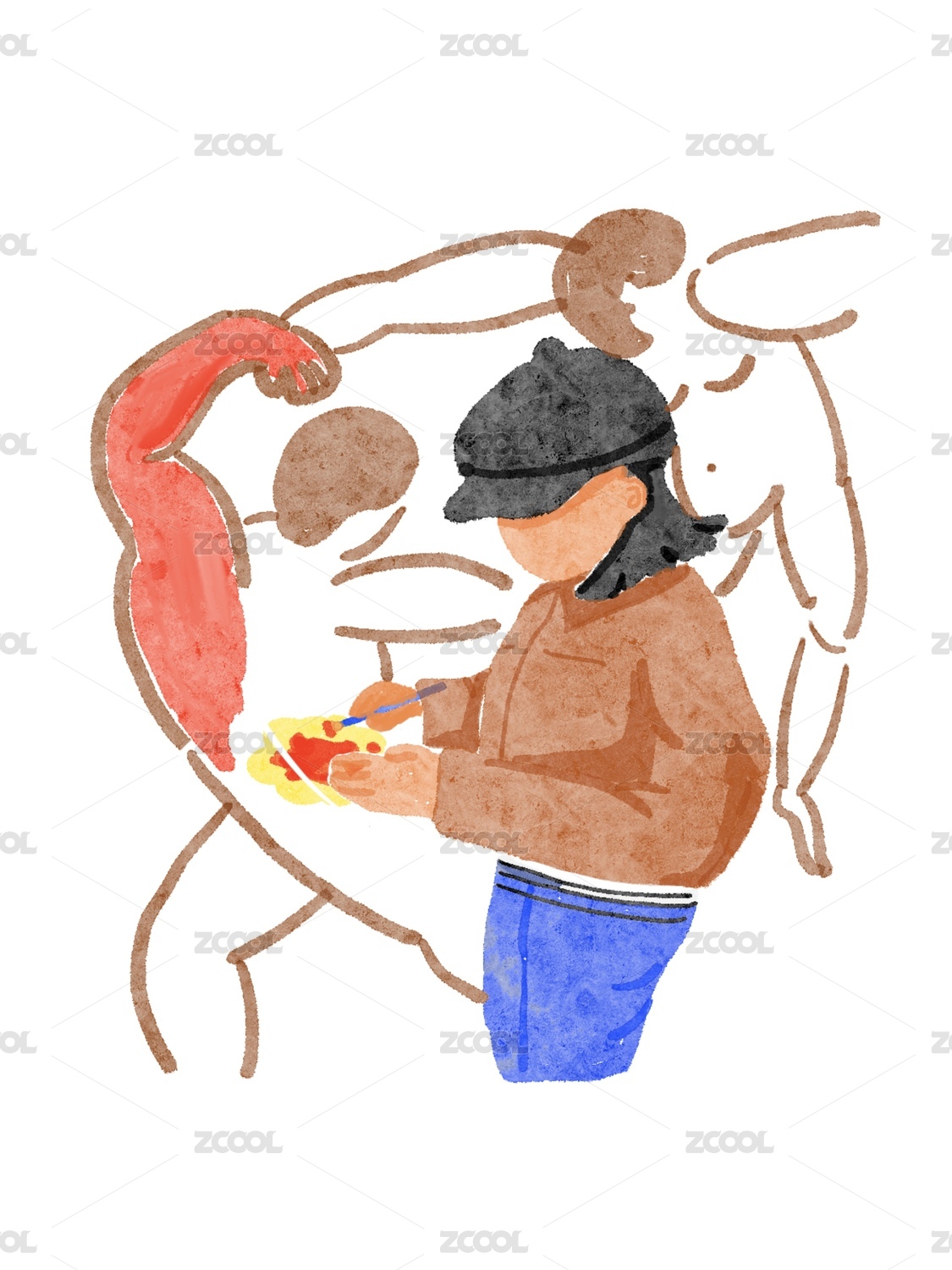 藝術(shù)家創(chuàng)作手繪墻繪丙烯水彩跳舞世界名畫女