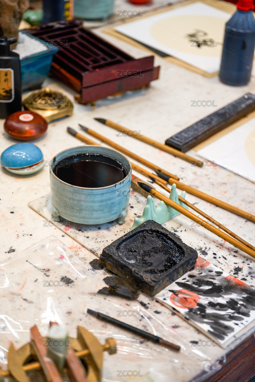 書法藝術(shù)工作室里的創(chuàng)作桌子區(qū)域