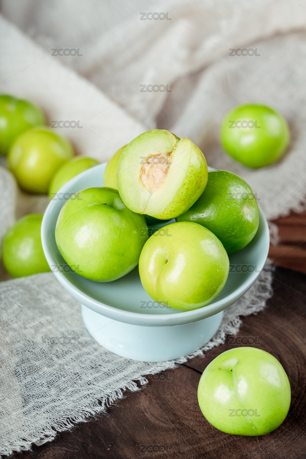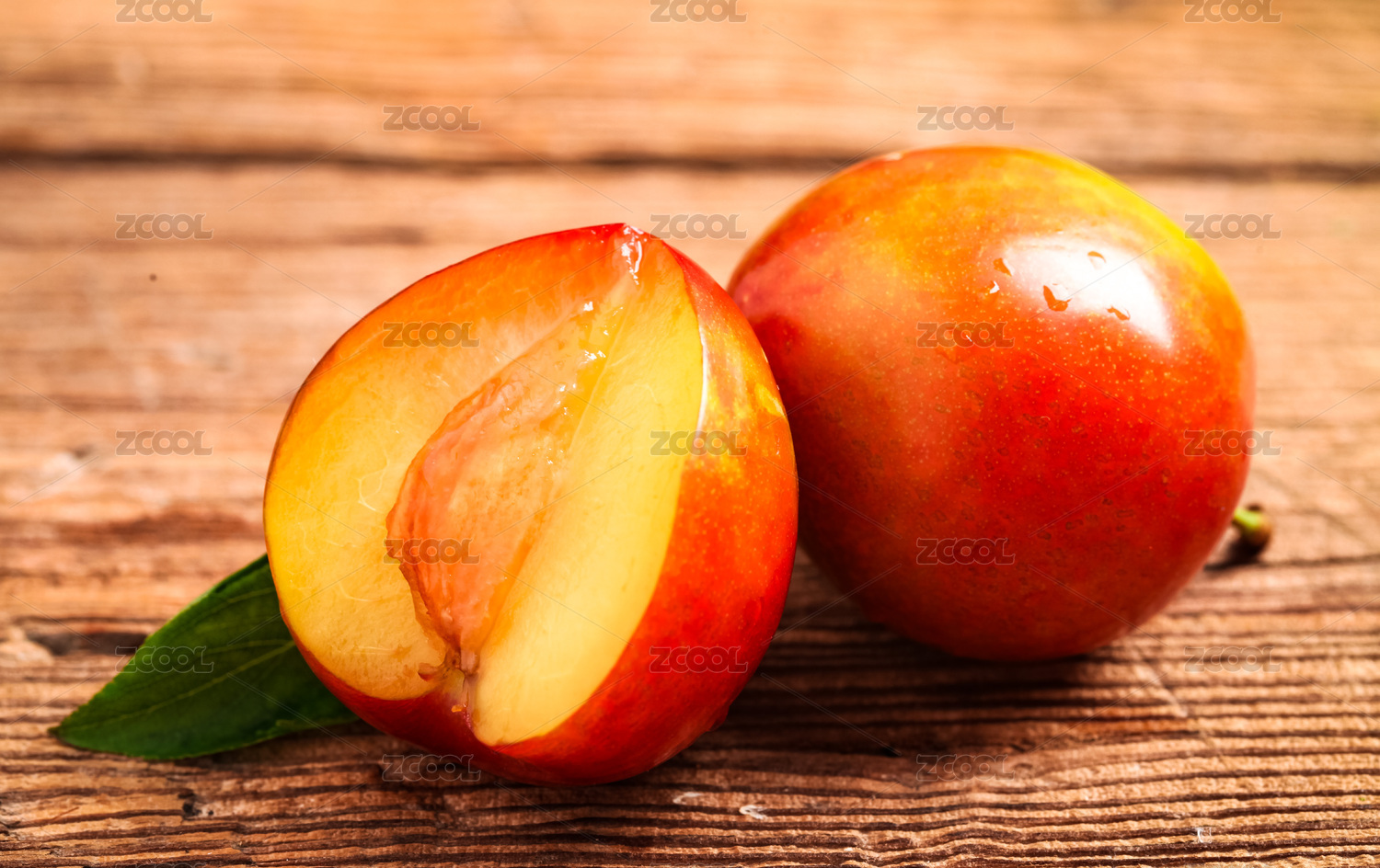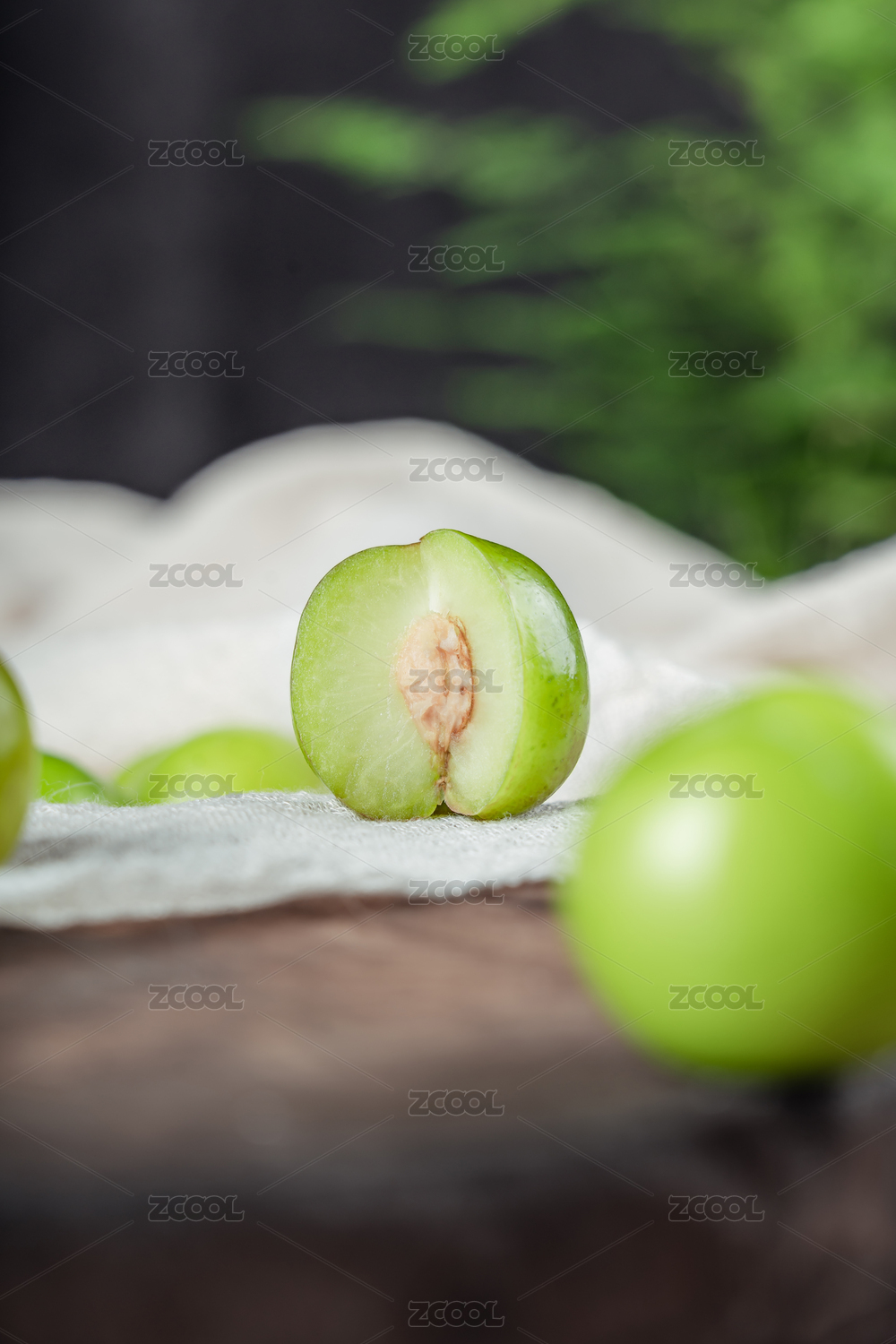 木底上放著切開的三月李