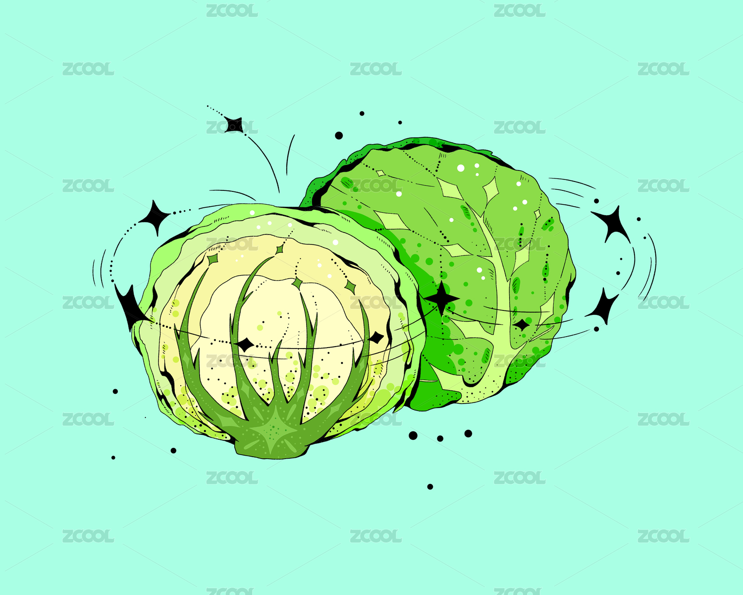小清新蔬果卷心菜星星創(chuàng)意插畫