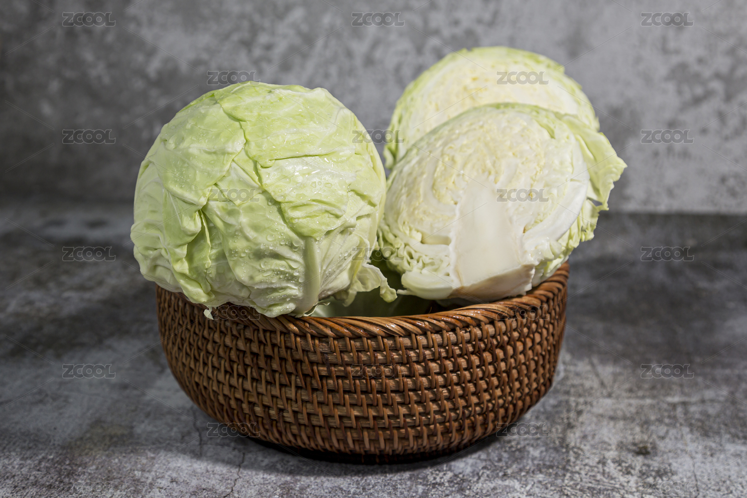 卷心菜放在竹筐里
