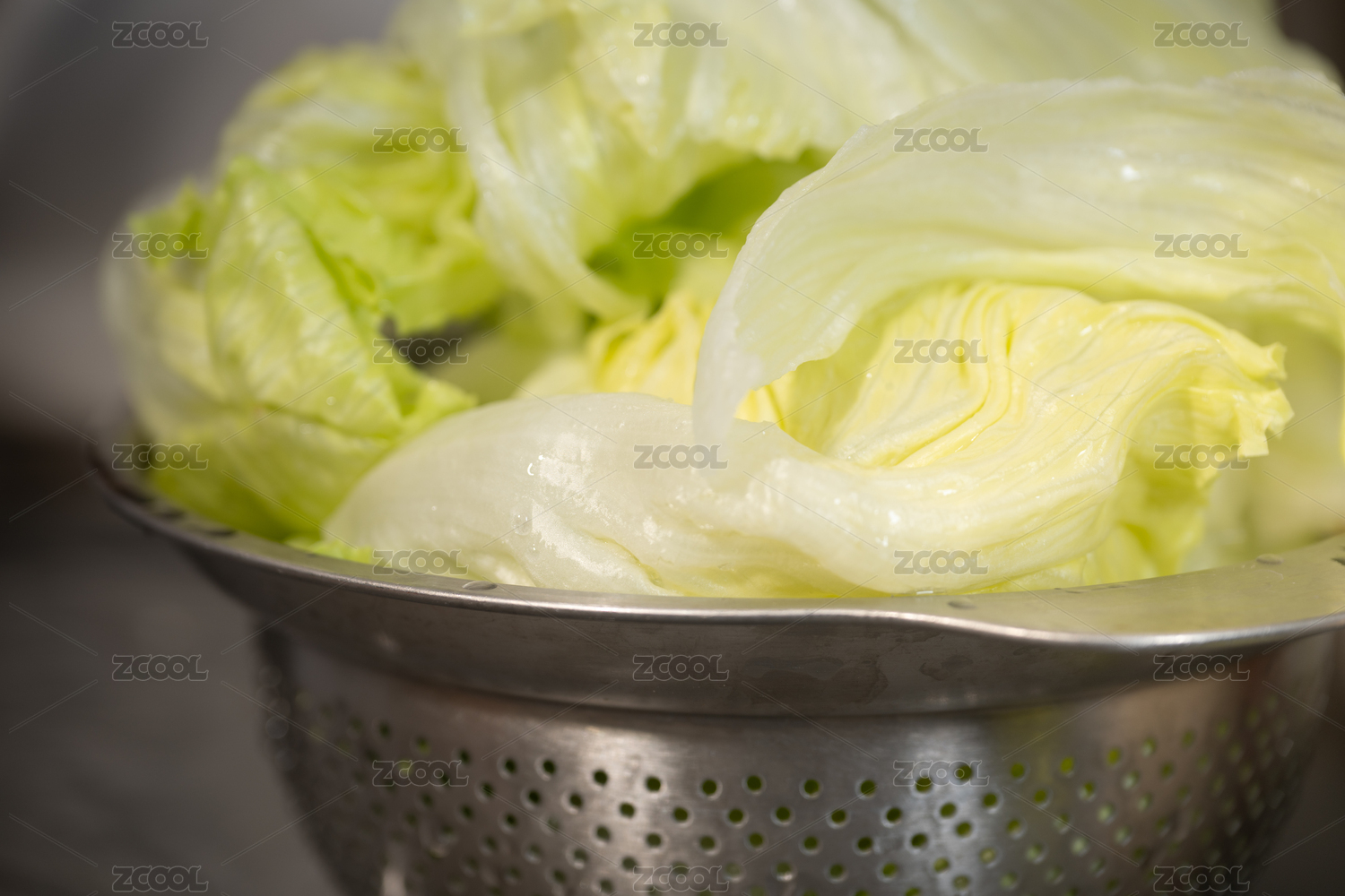 新鮮卷心菜在金屬濾網(wǎng)中