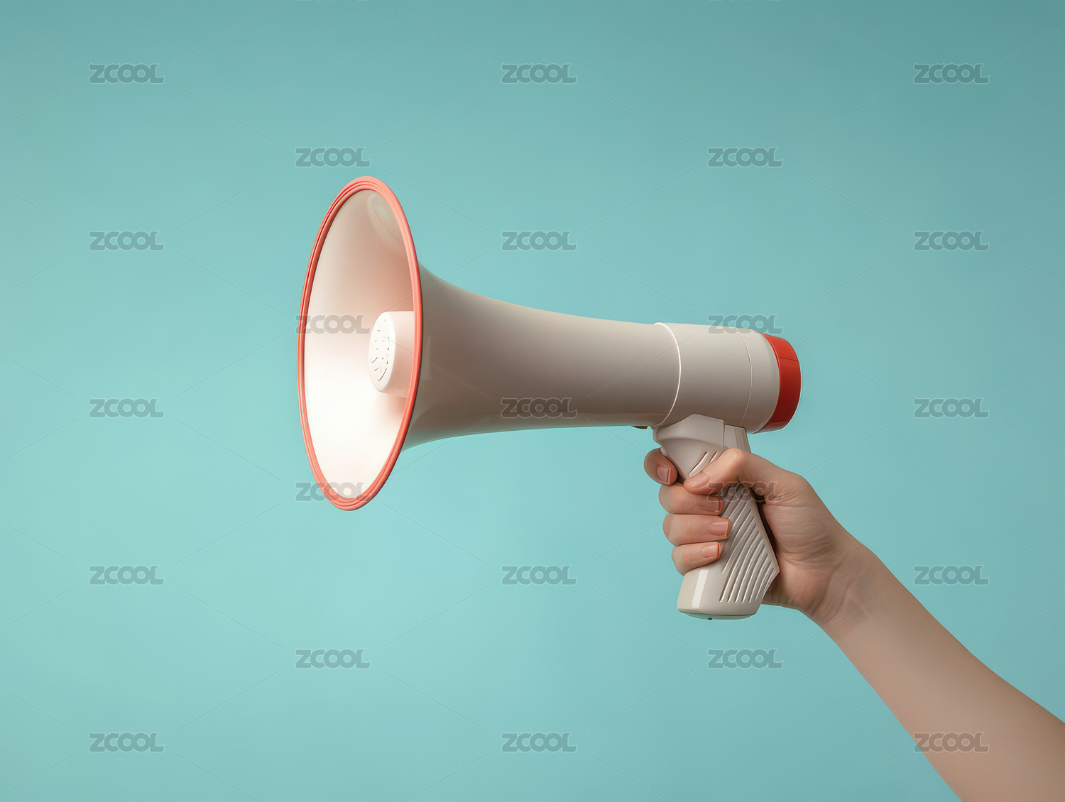 嚴重的女廚師女人拿著大聲公擴音器面約在白色背景上有超過COPYSPACE墻空白區(qū)域的食品安全問題的消息相機生氣大叫消息。