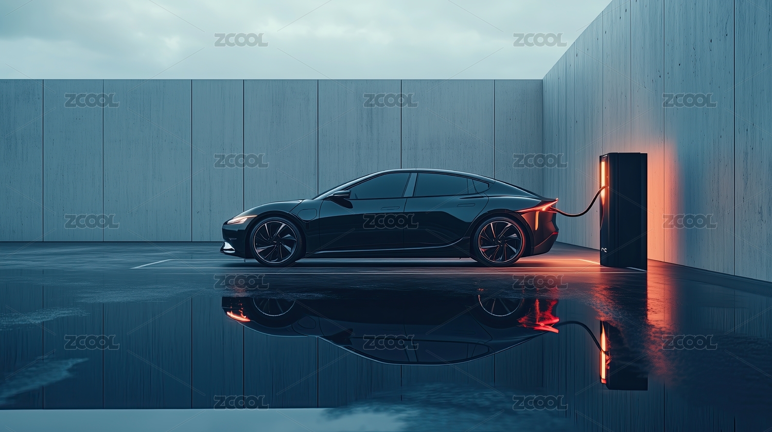 電動汽車充電, 簡約的現(xiàn)代建筑背景