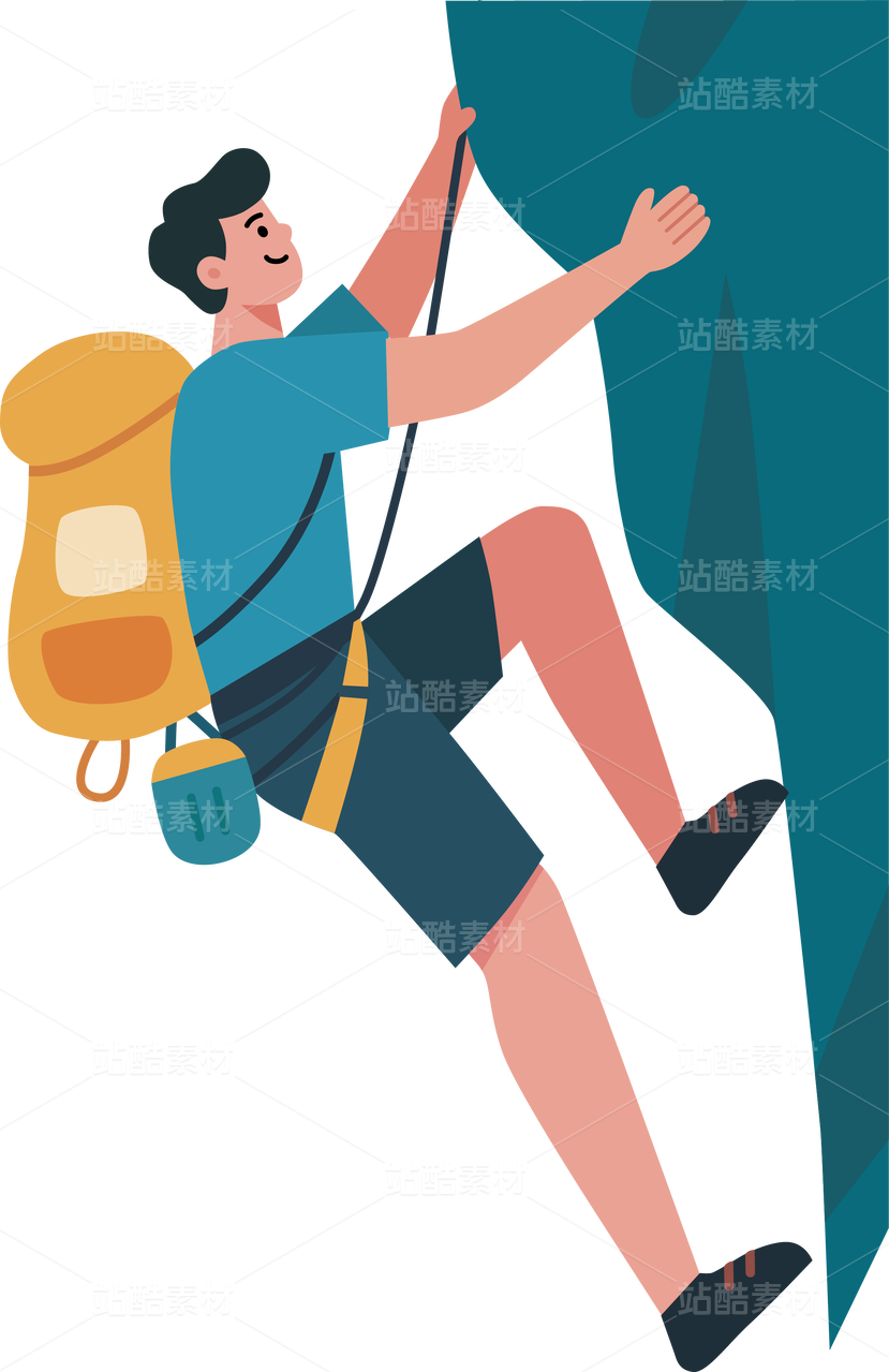 男青年徒手攀巖的插畫