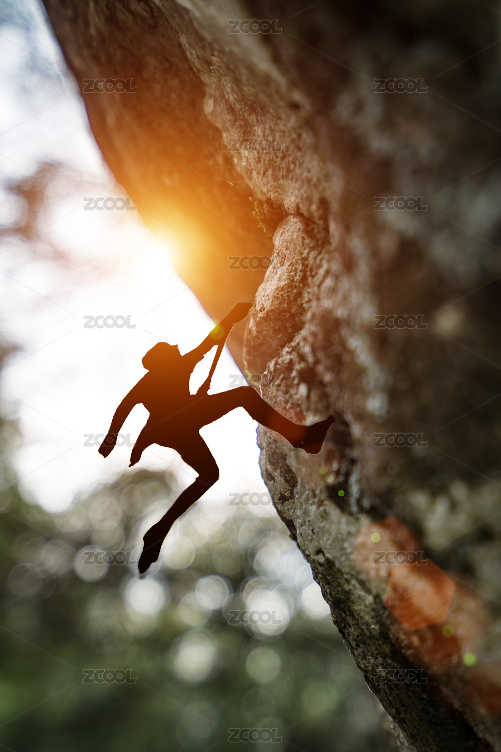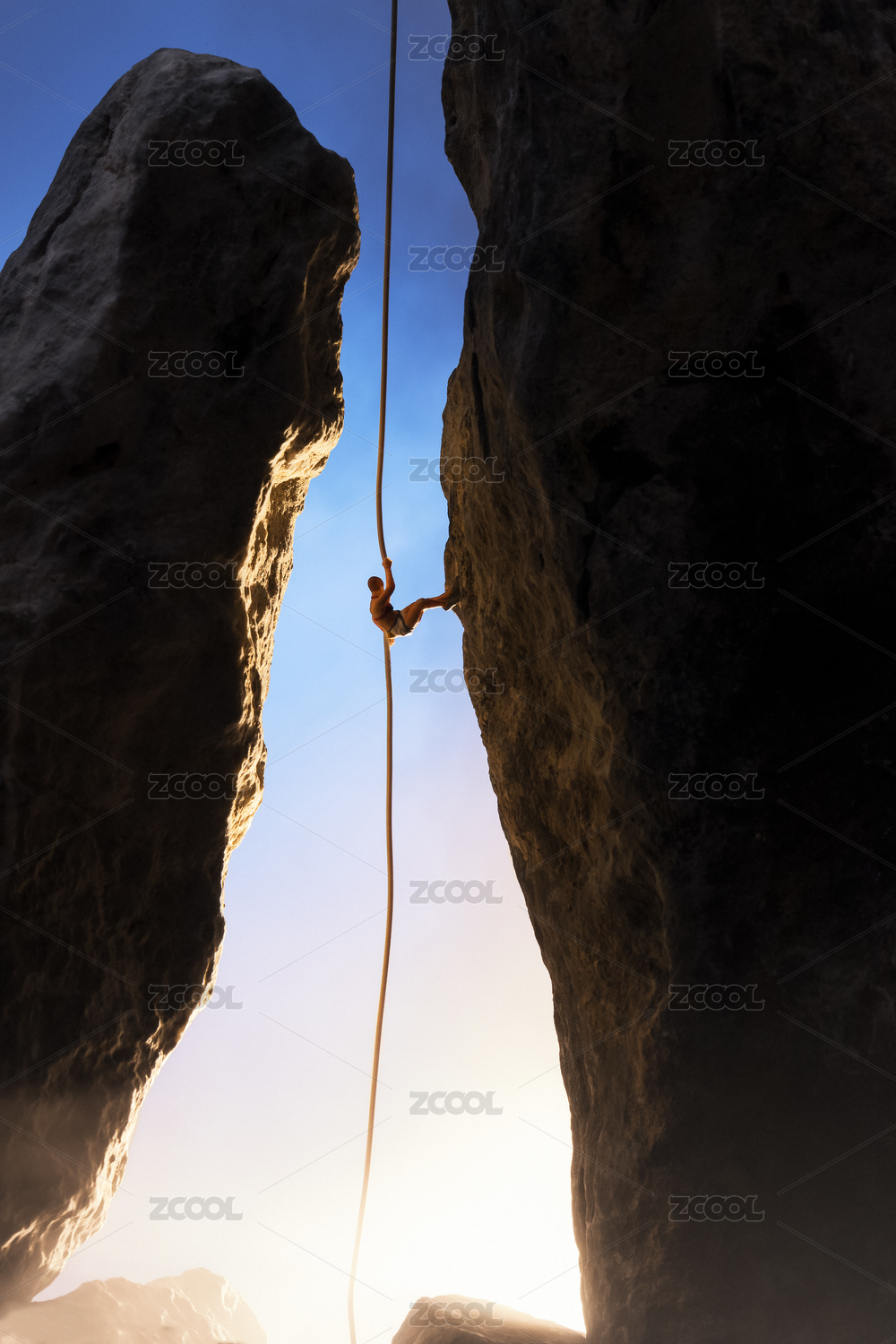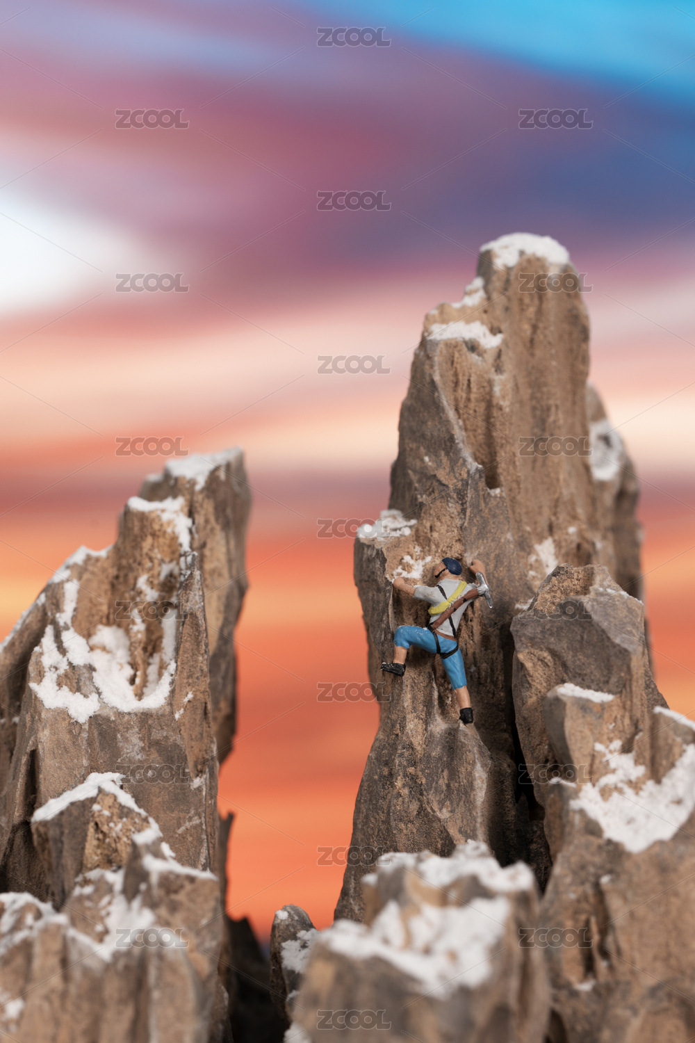 微縮攝影極限運動夕陽下攀巖攀登