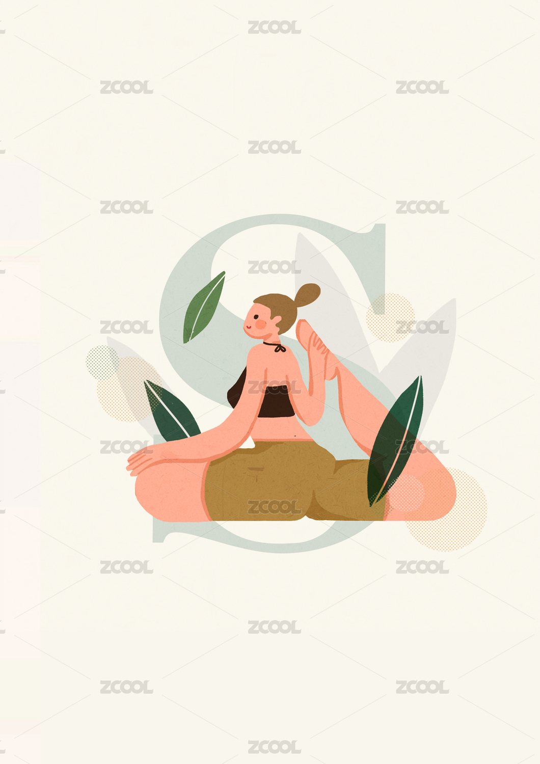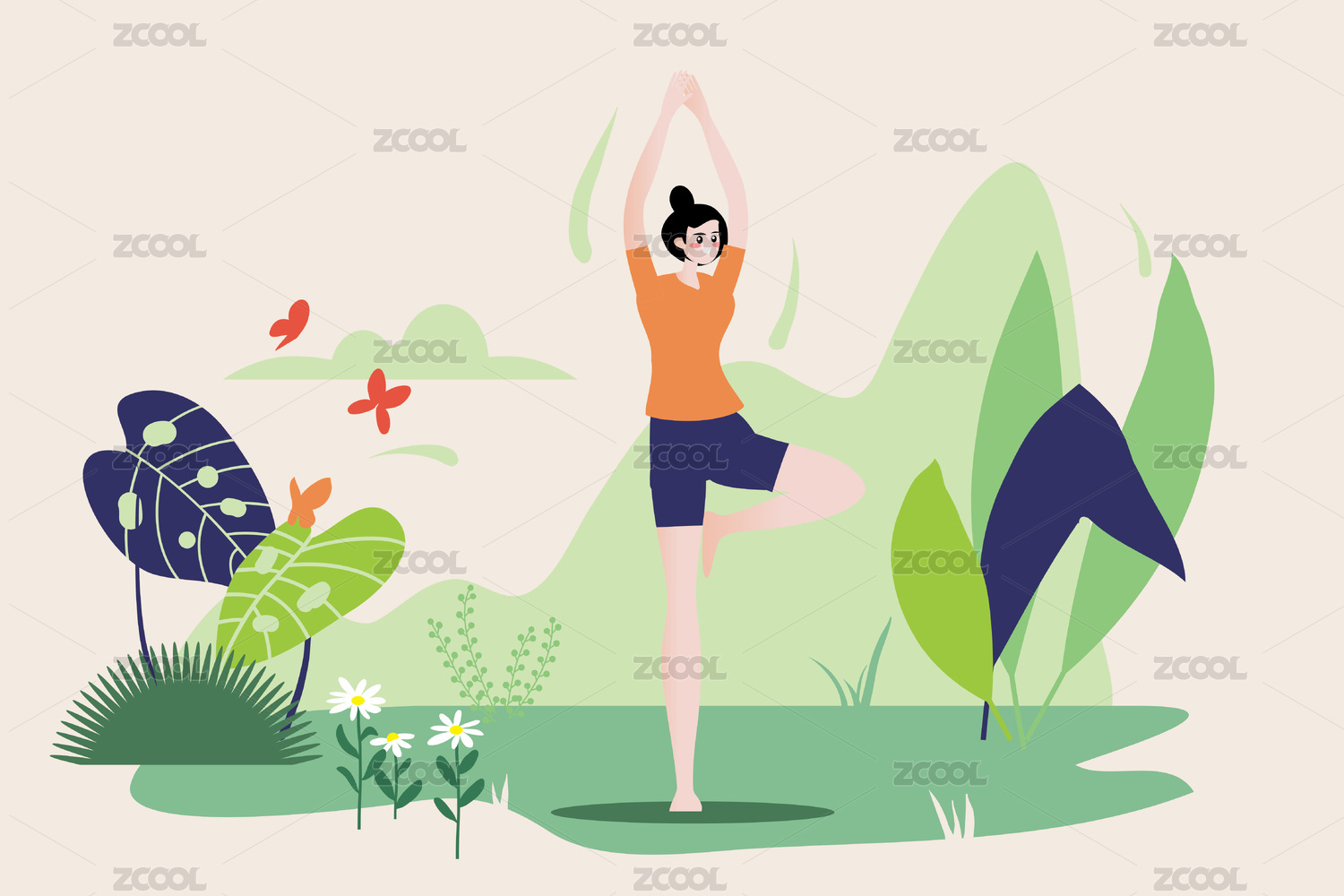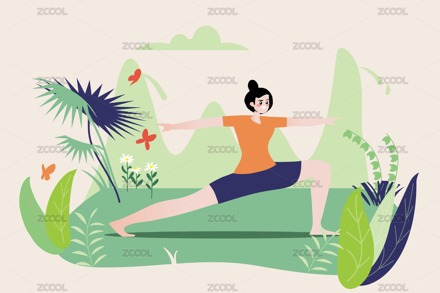 休閑瑜伽普拉提健身運動矢量扁平插畫