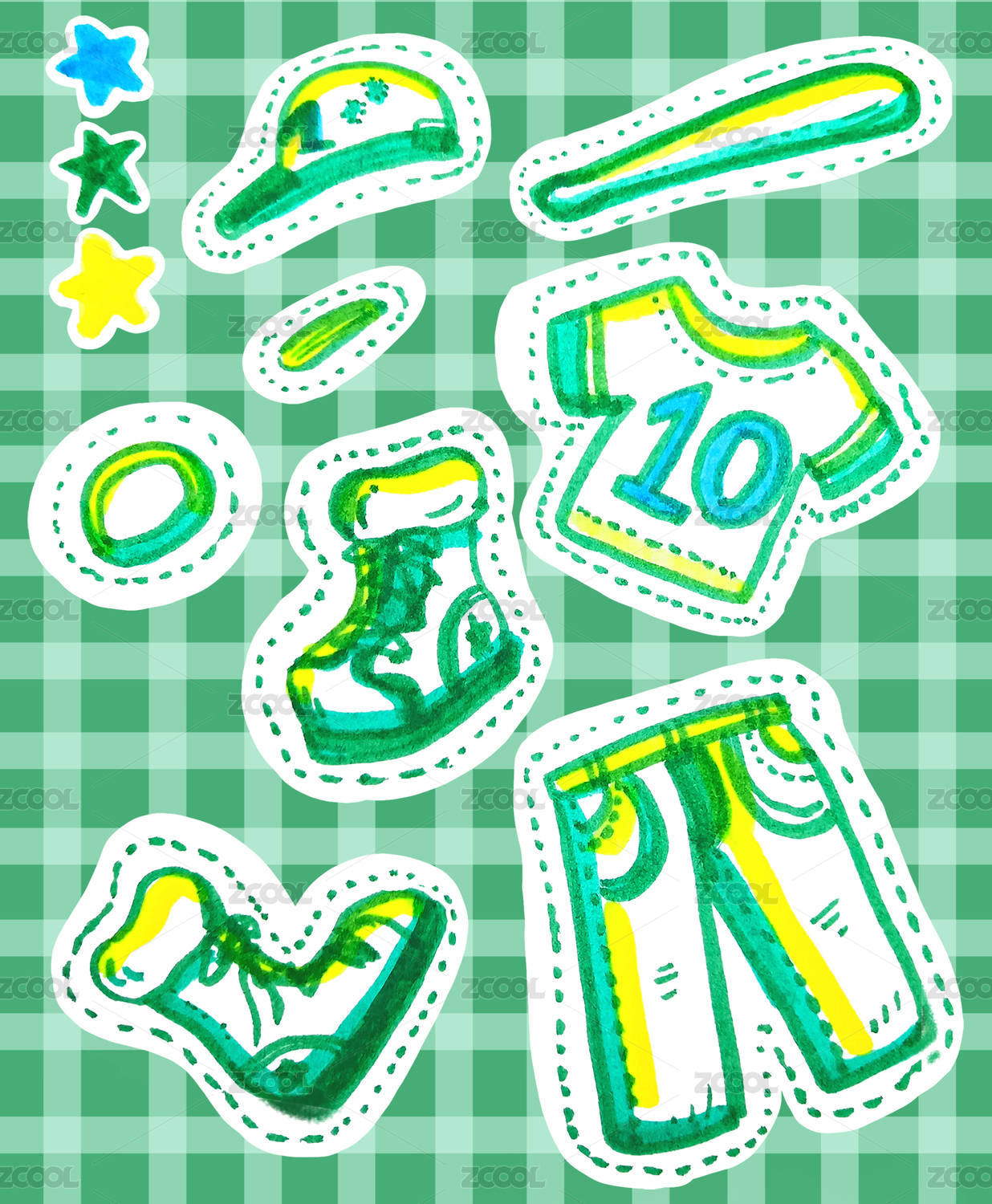 手繪運動休閑服裝貼紙