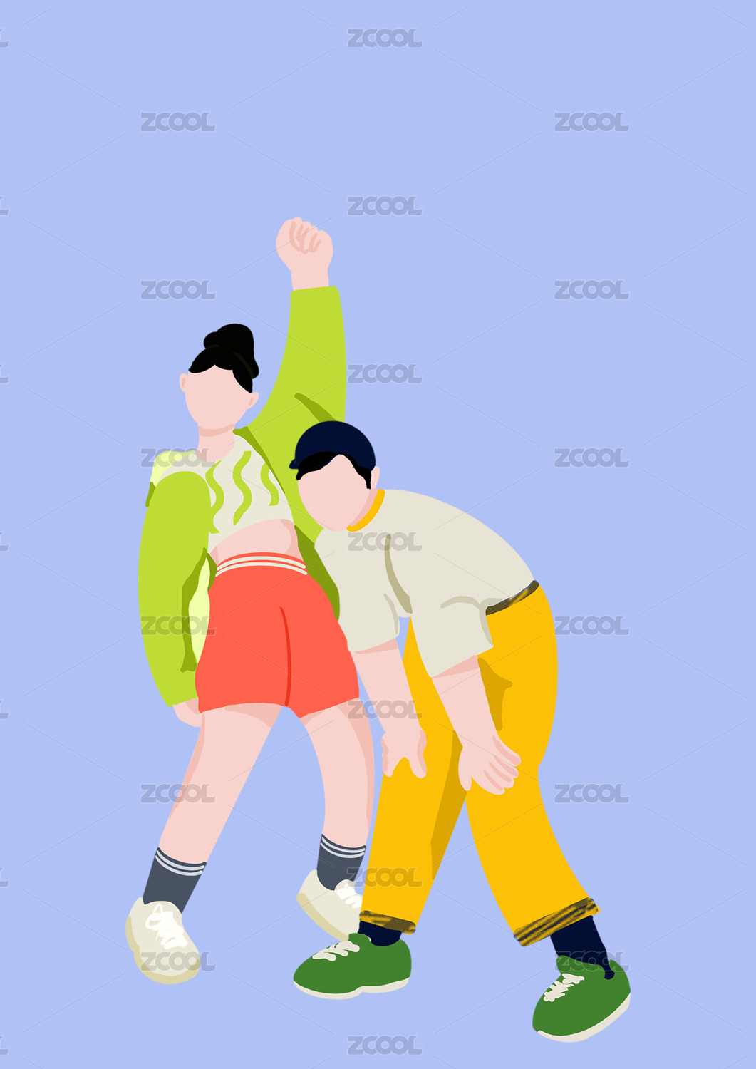 運動休閑青年男女組合插畫