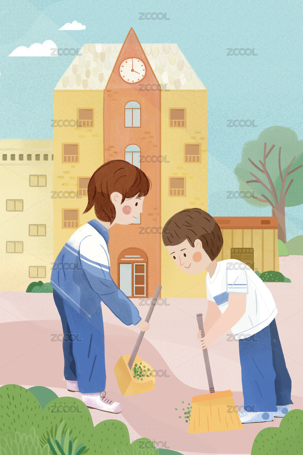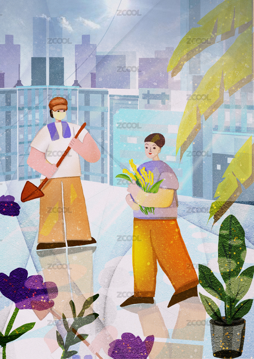 可愛女孩五一做家務(wù)插畫矢量
