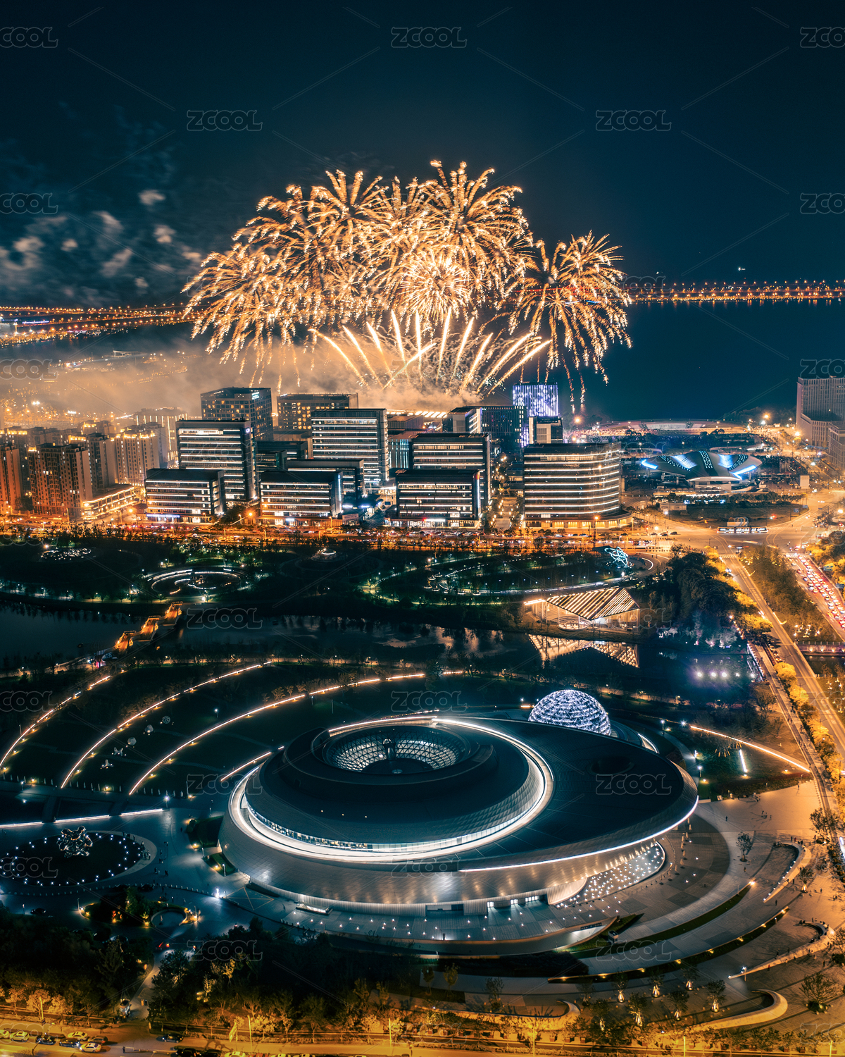 五一期間上海浦東滴水湖燃放煙花慶祝