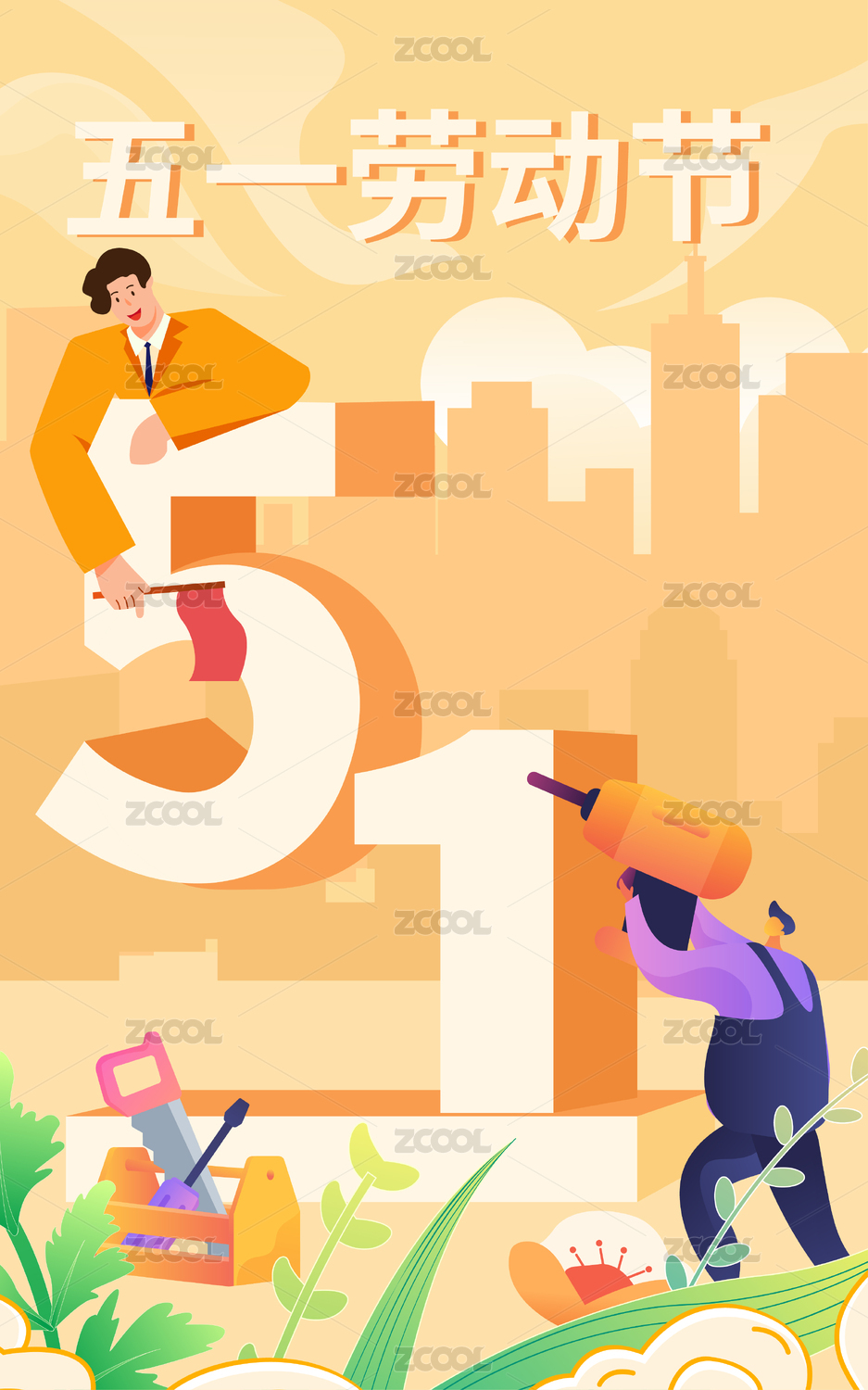 五一勞動(dòng)節(jié)插畫矢量圖