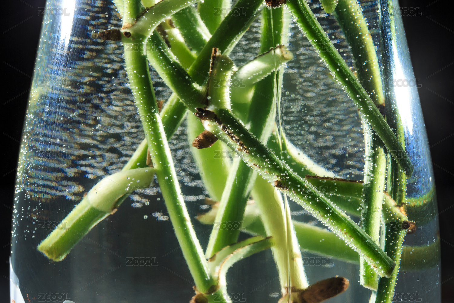 水培盆栽植物的根莖特寫