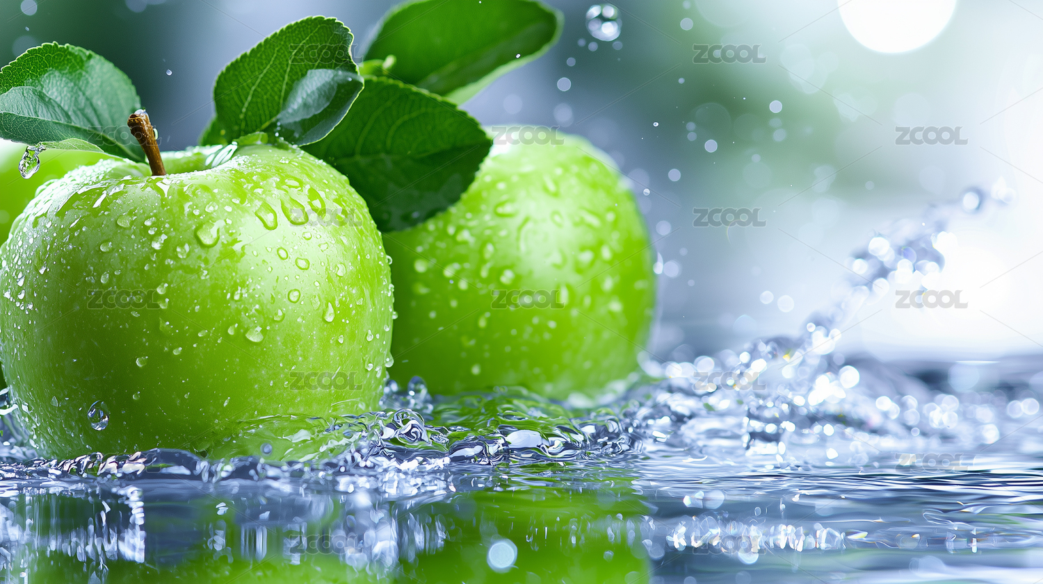 水中碰撞的綠色青蘋果電商海報