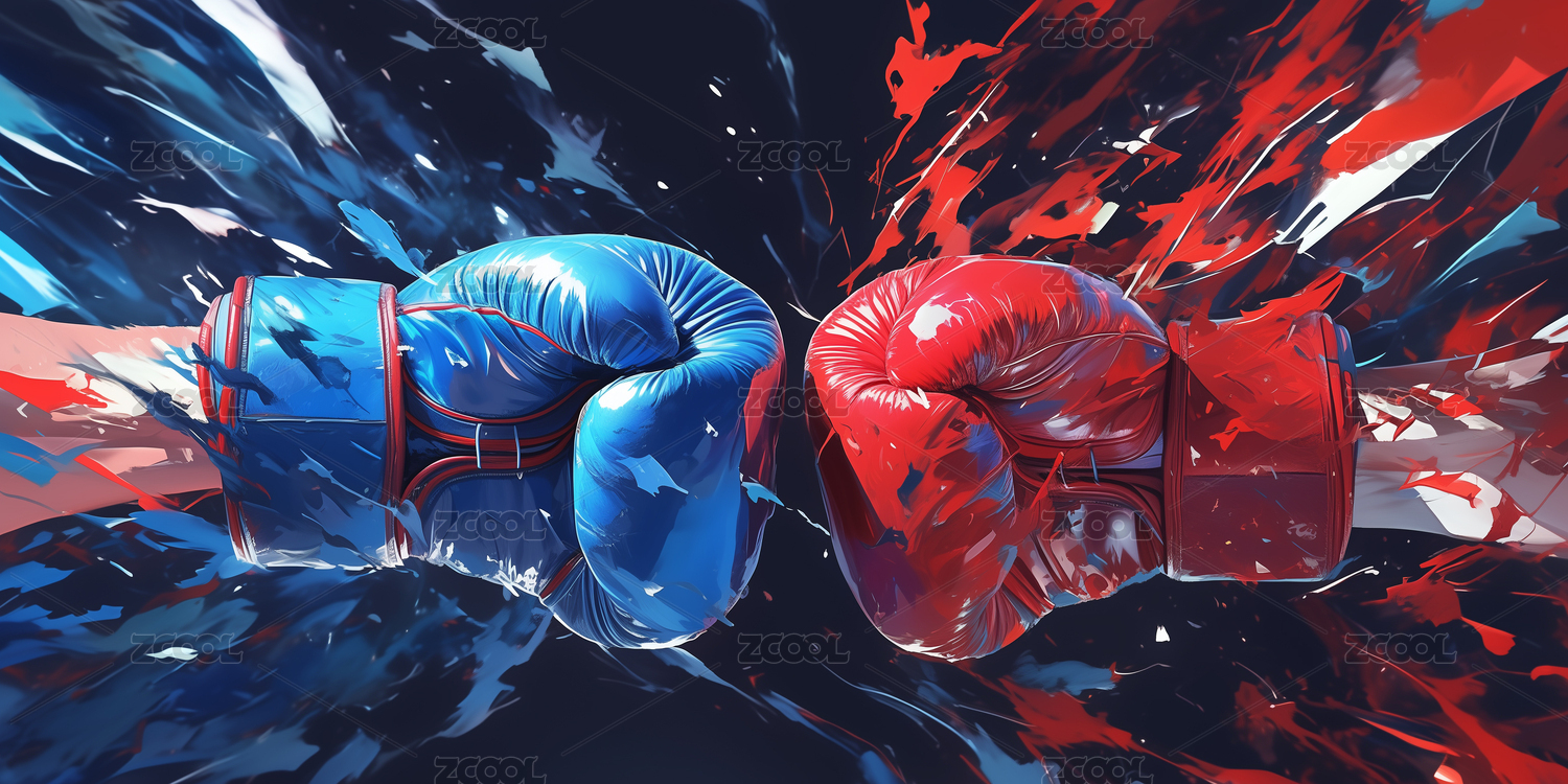 夸張拳擊拳套對打迸濺氣浪火光的黑底插畫
