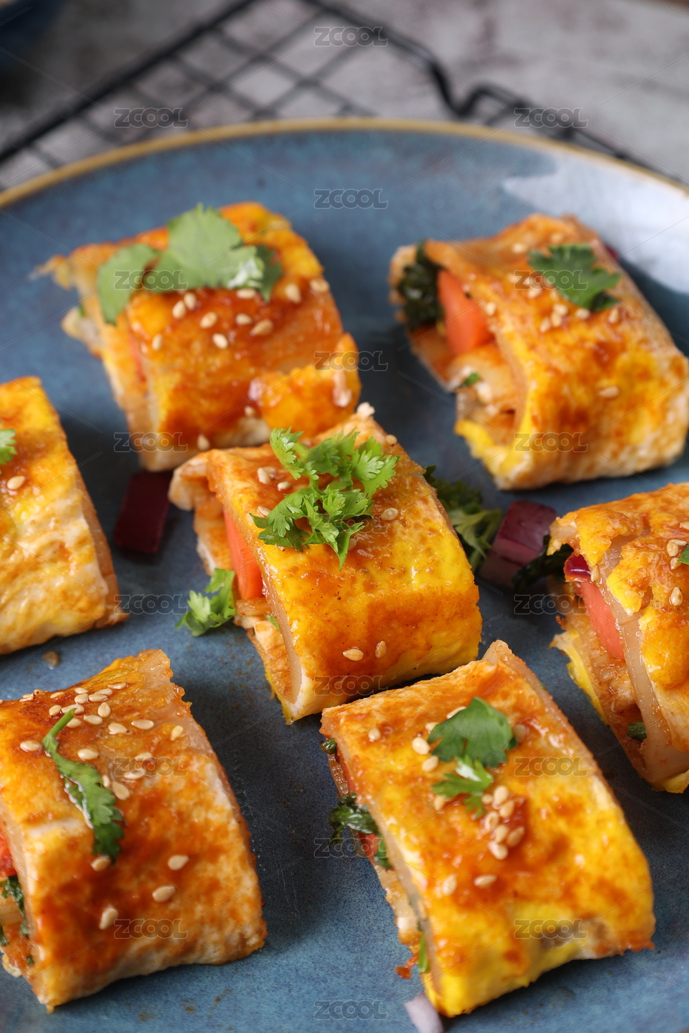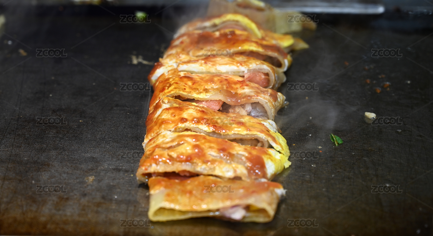 白底上的烤冷面特寫