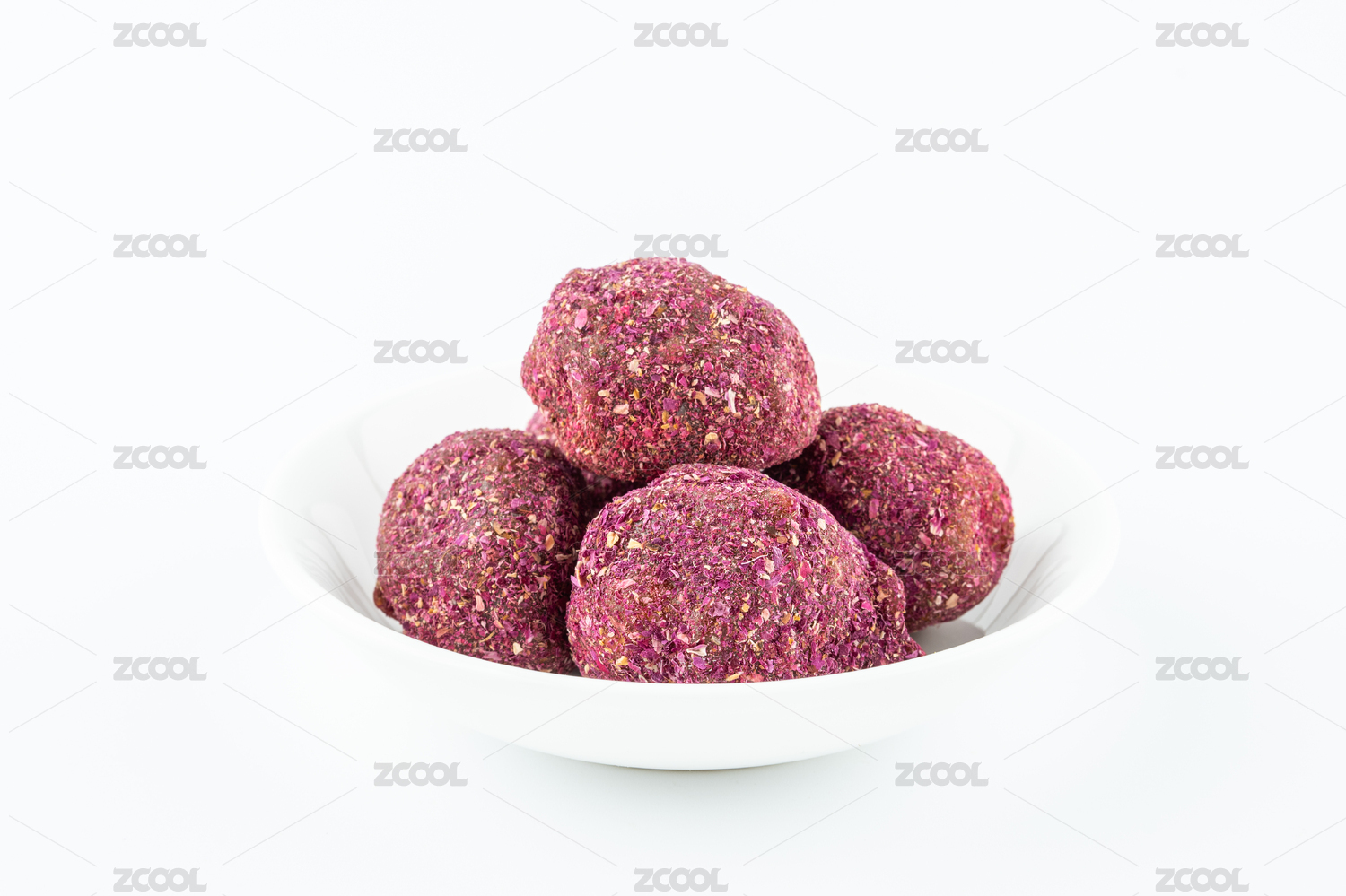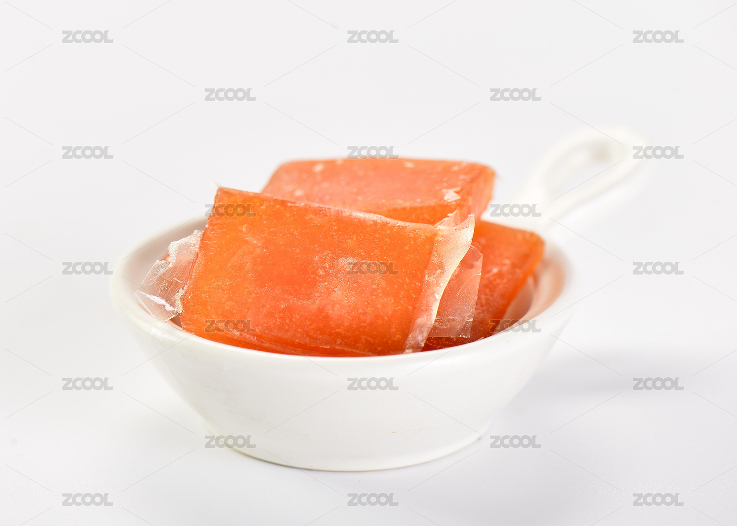 白色背景上擺放的零食酸棗糕