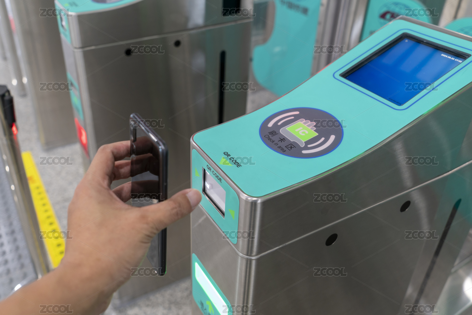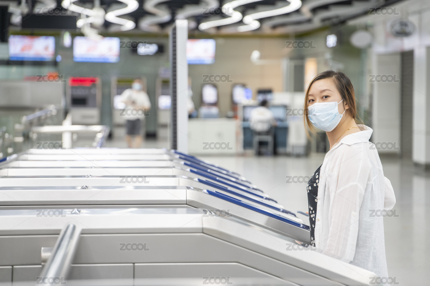 年輕女性正在通過(guò)地鐵閘機(jī)