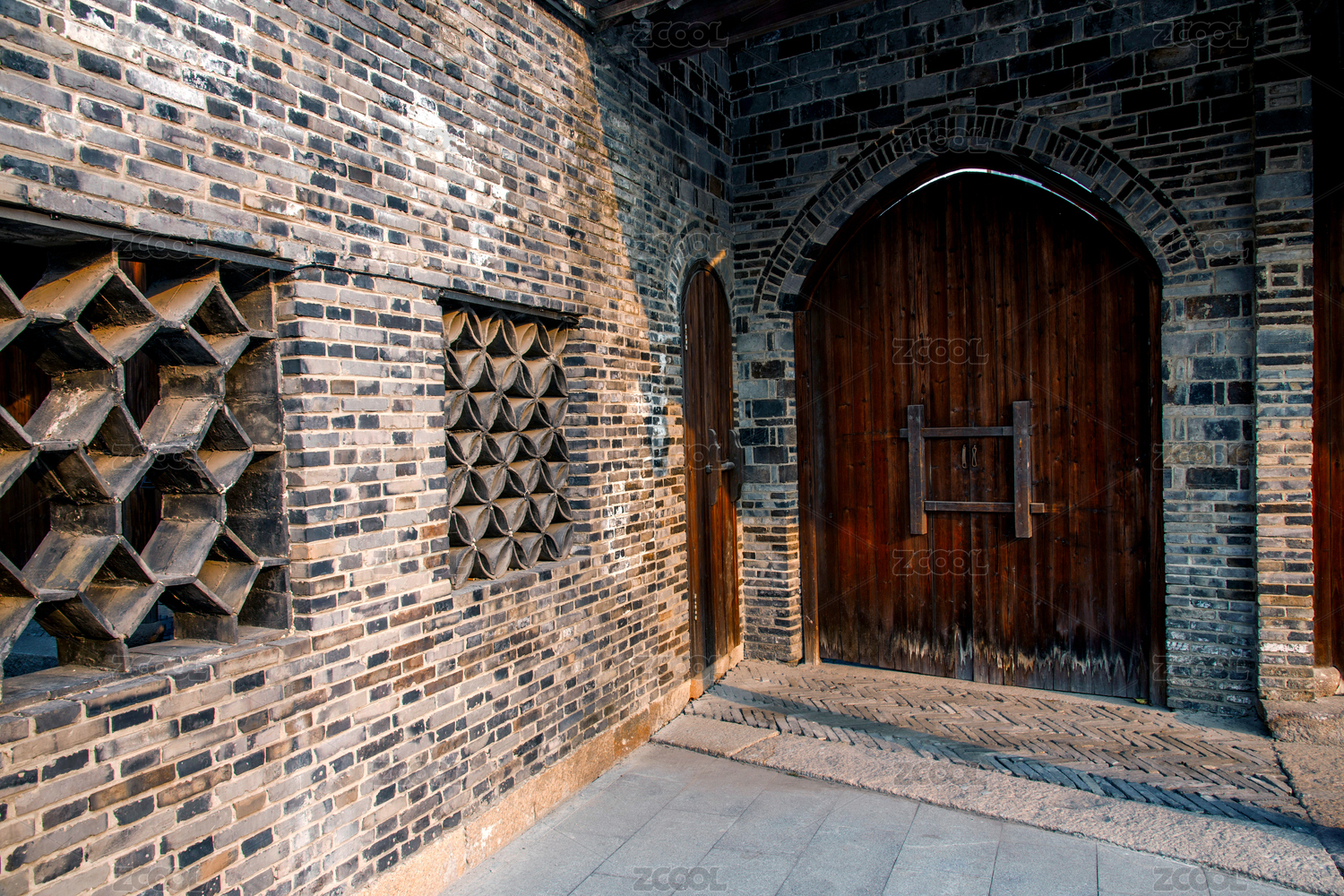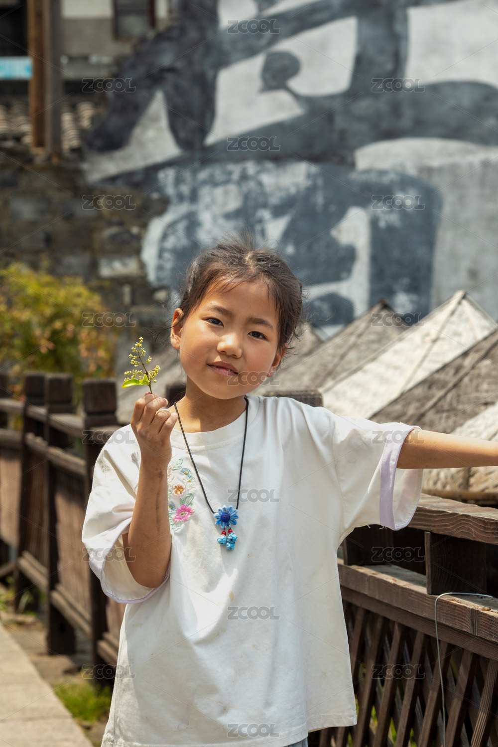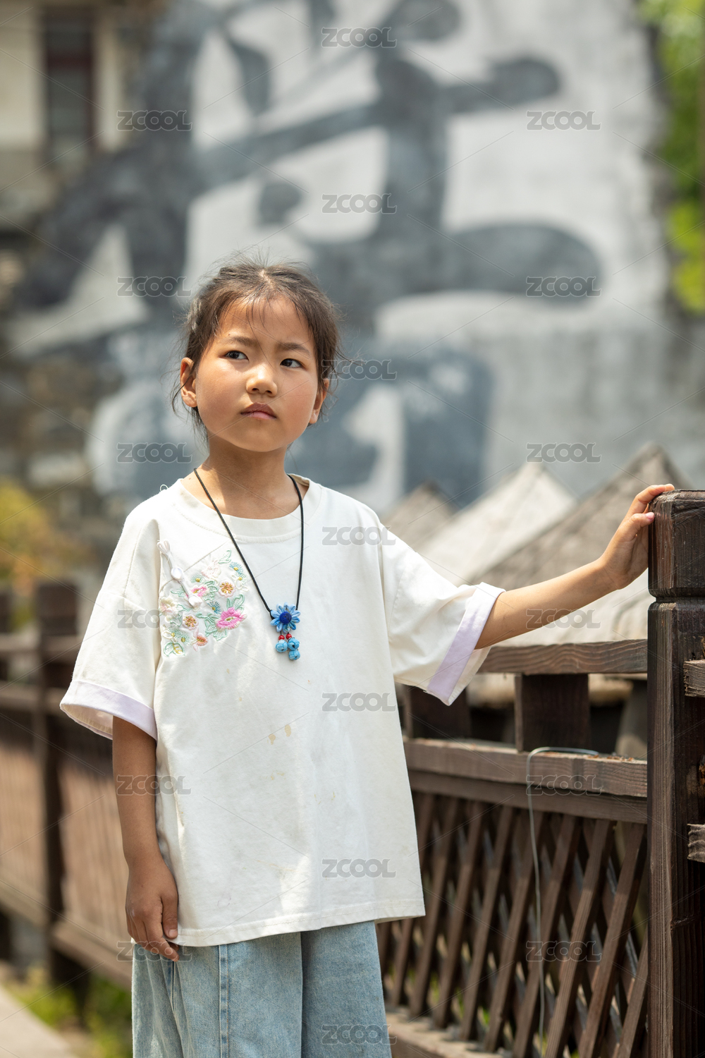 小女孩在傳統(tǒng)醬園中背景為黑白書法文字
