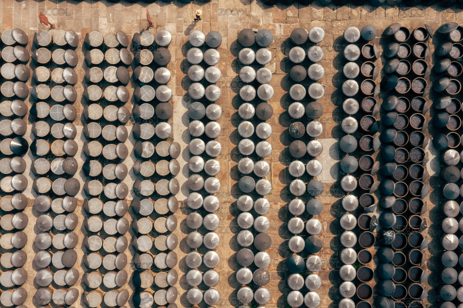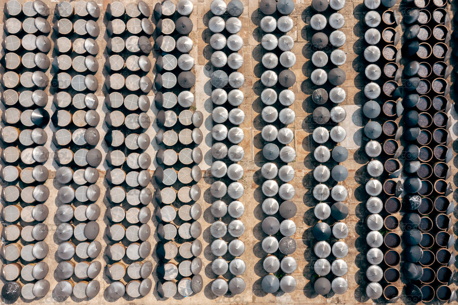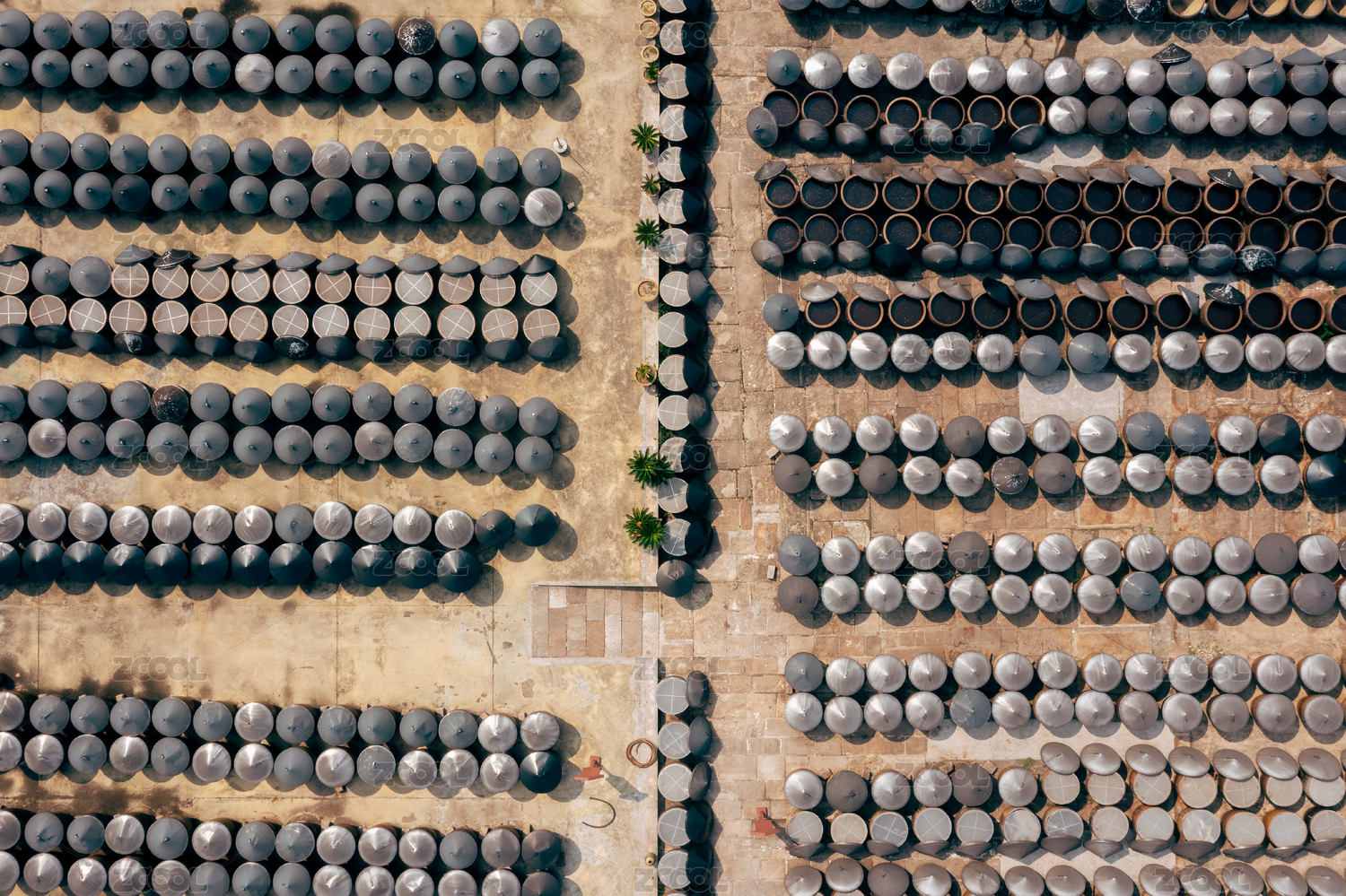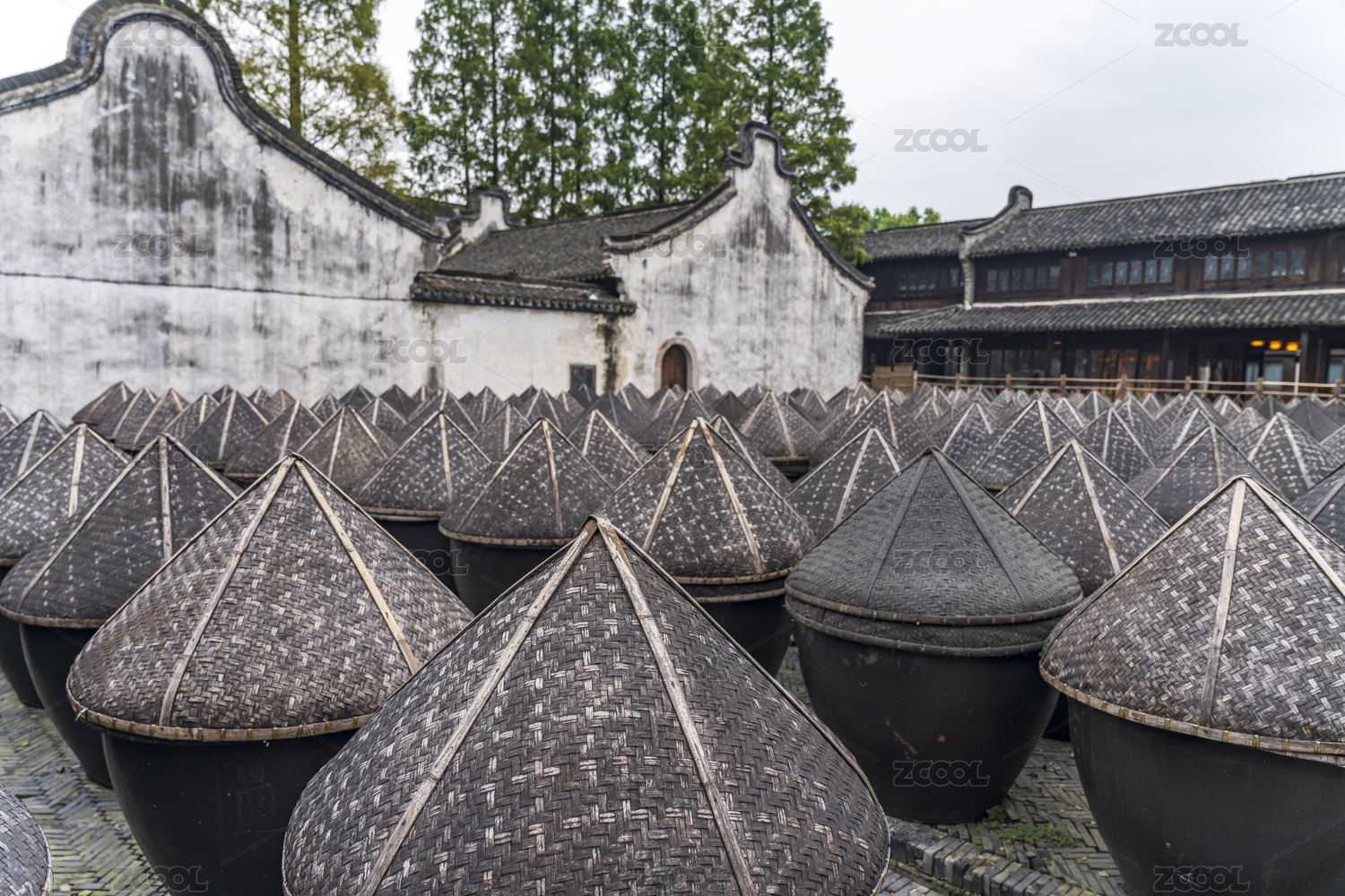 浙江紹興安昌古鎮(zhèn)非遺產(chǎn)傳承排列整齊的醬缸