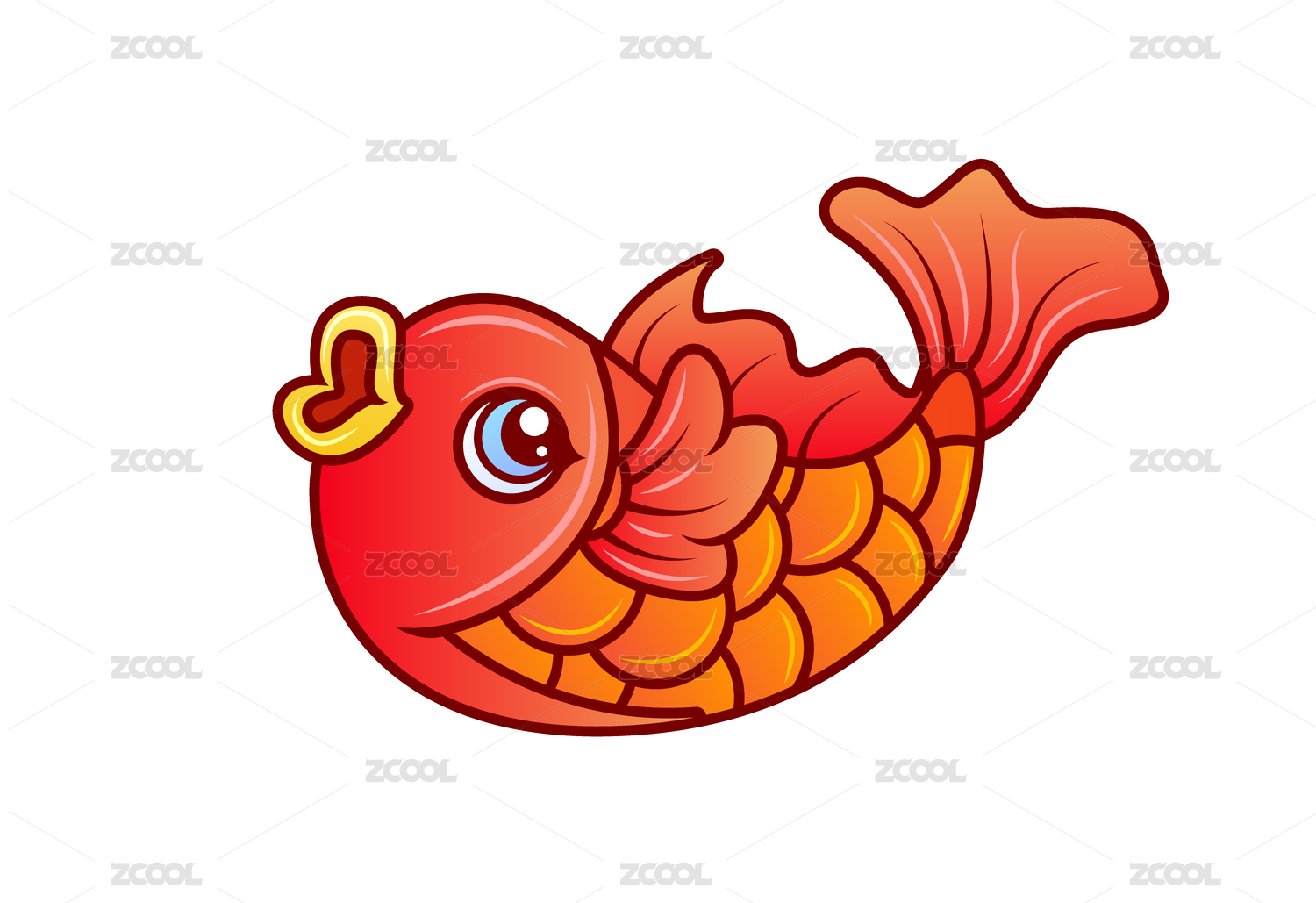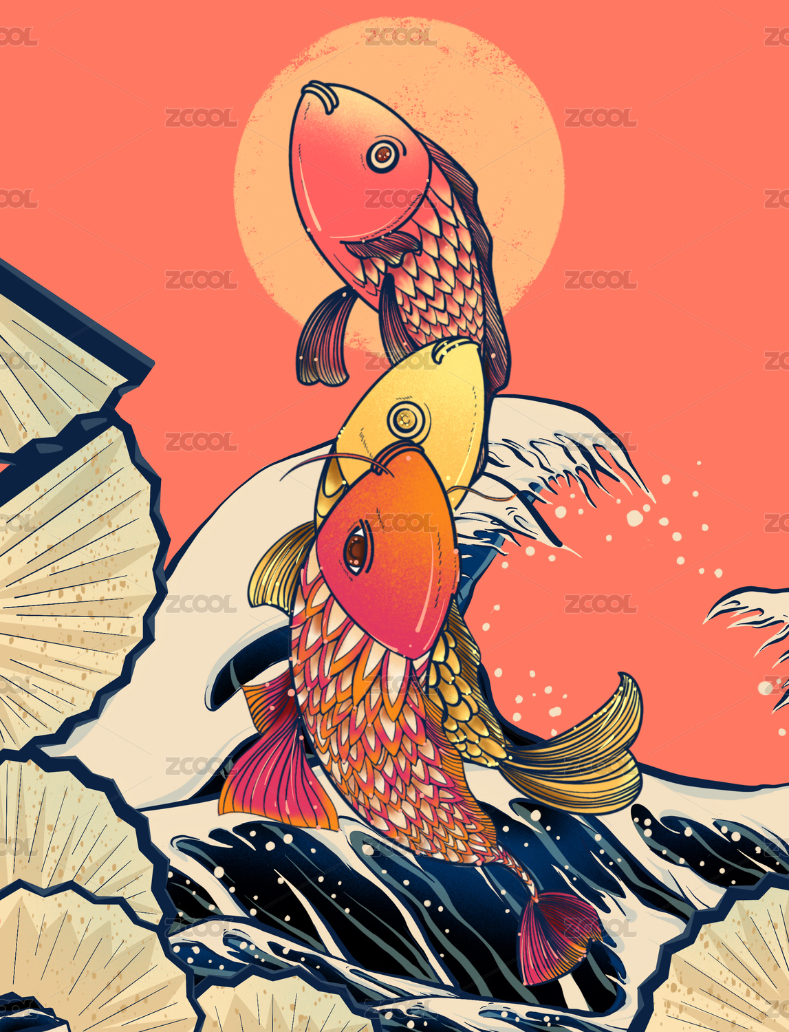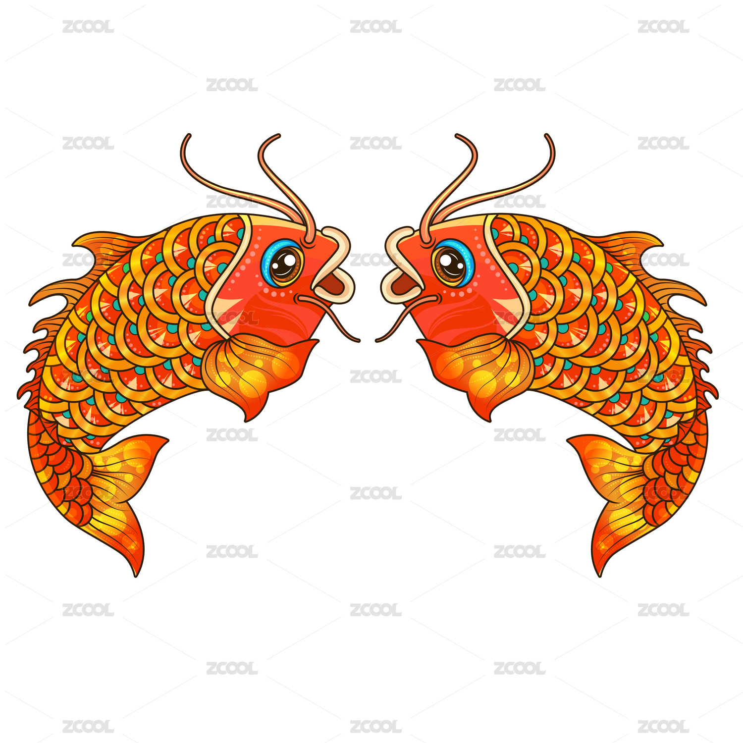 卡通紅色矢量卡通新年春節(jié)錦鯉金幣鯉魚躍起