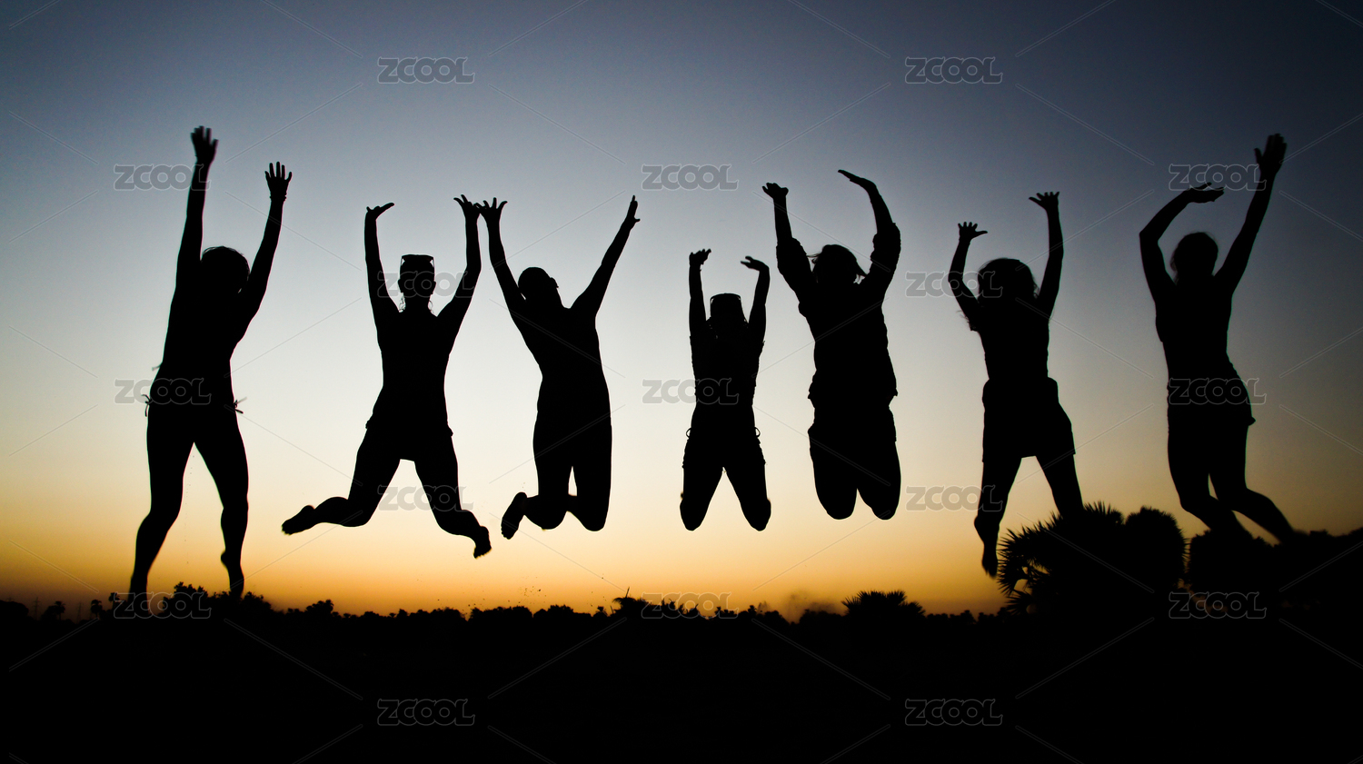 歡呼跳躍起來的青年男女慶祝歡呼喜悅節(jié)日