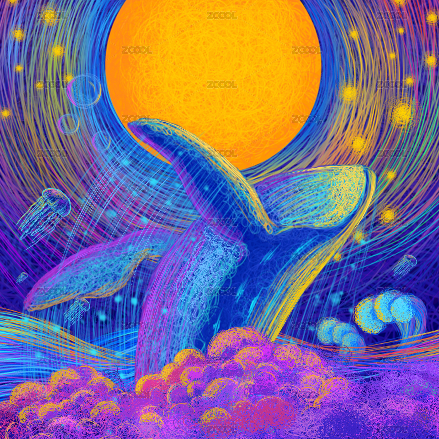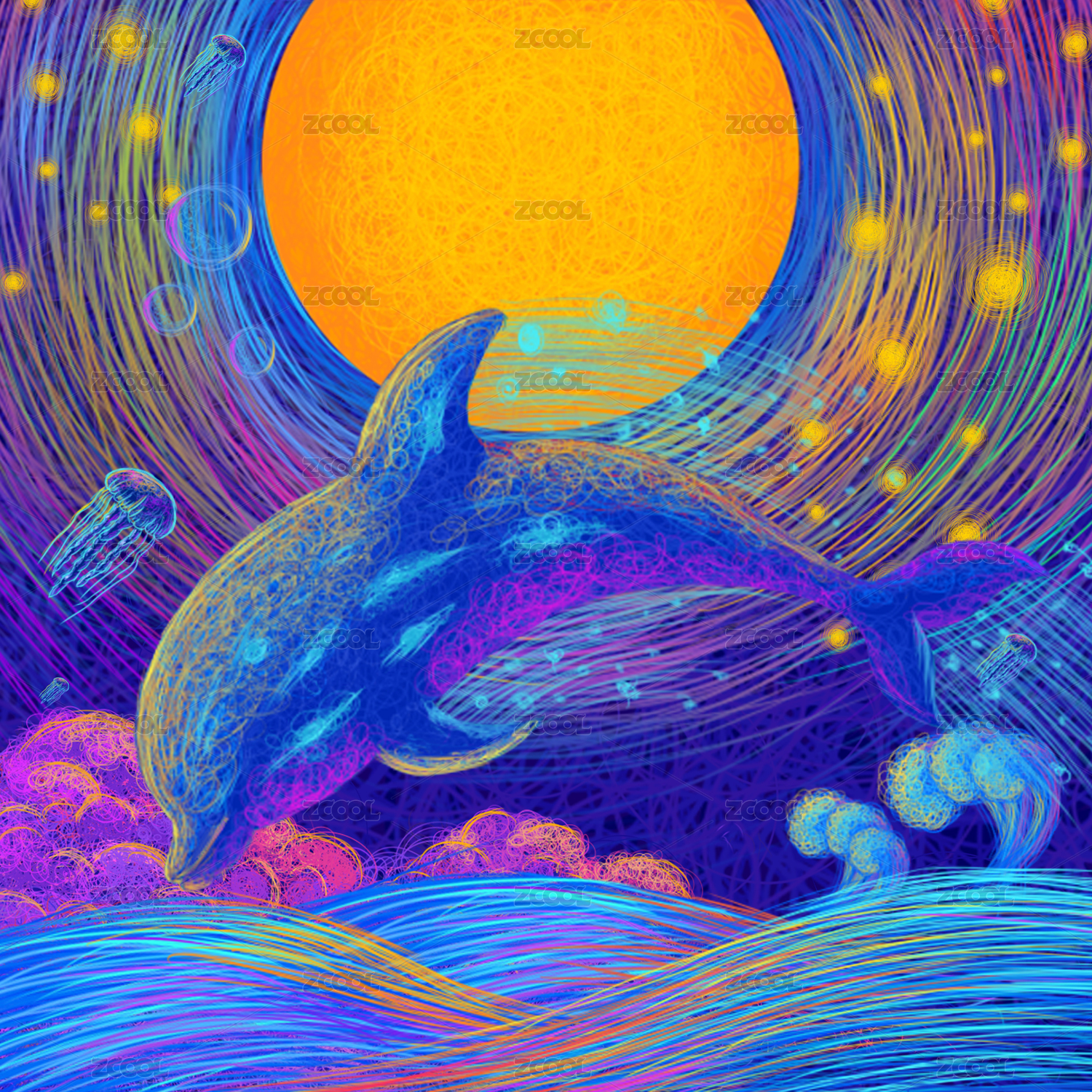 一只倉(cāng)鼠坐在躍起的鯉魚身上,手里拿著一朵蓮花