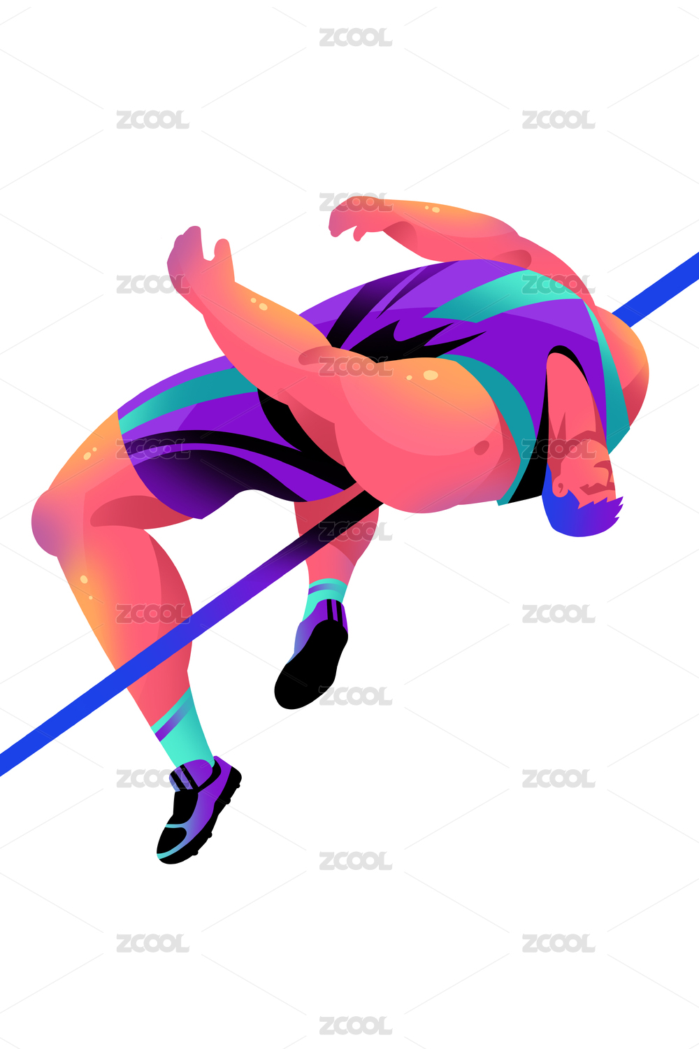 男運(yùn)動(dòng)員躍起跳高的插畫