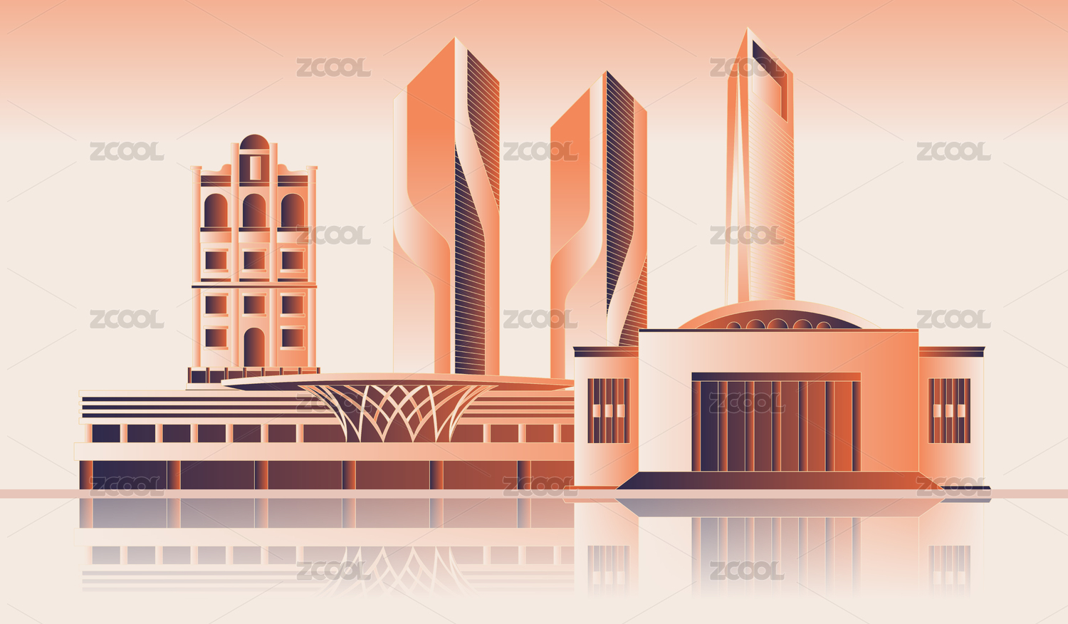 中國廣東省江門市五邑華僑廣場和萬達廣場全景