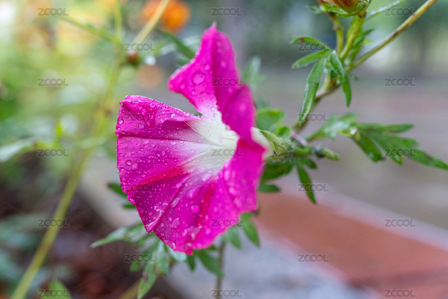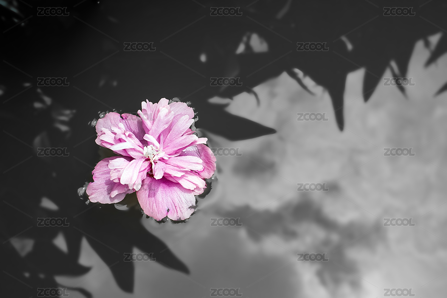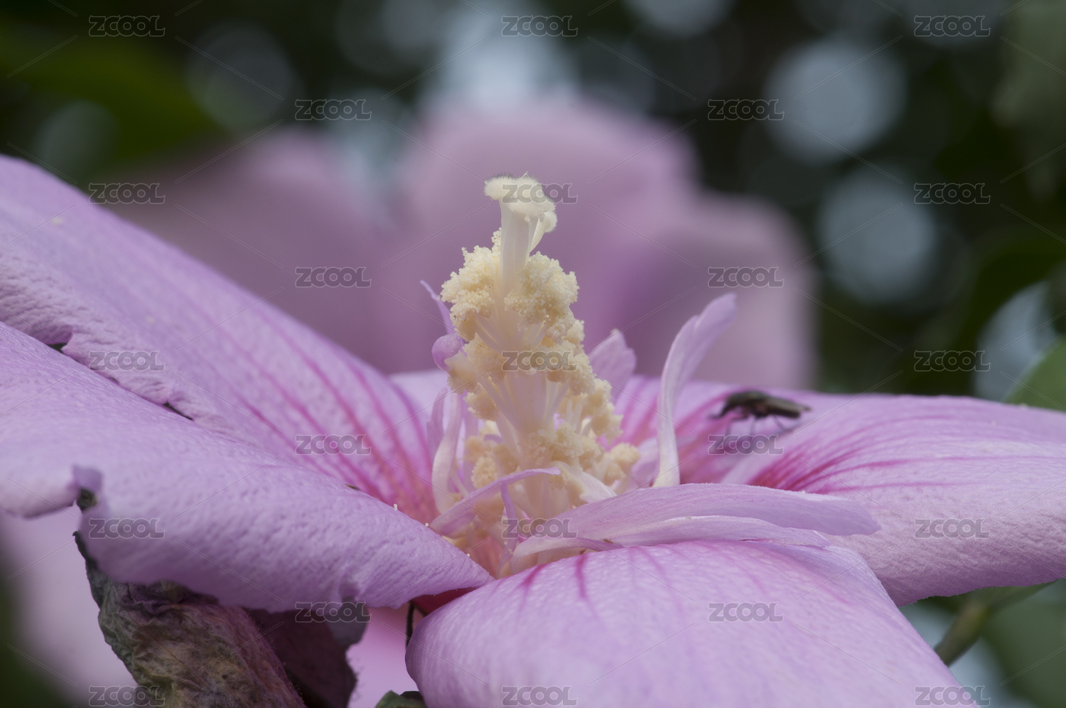 綠葉襯托下的粉色的粉紫重瓣木槿