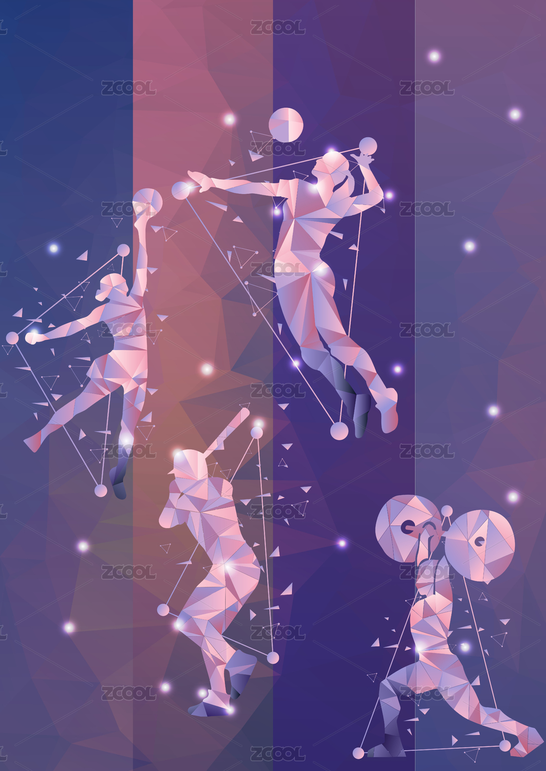 豎版抽象背景運動人物奧運項目矢粉紫矢量插