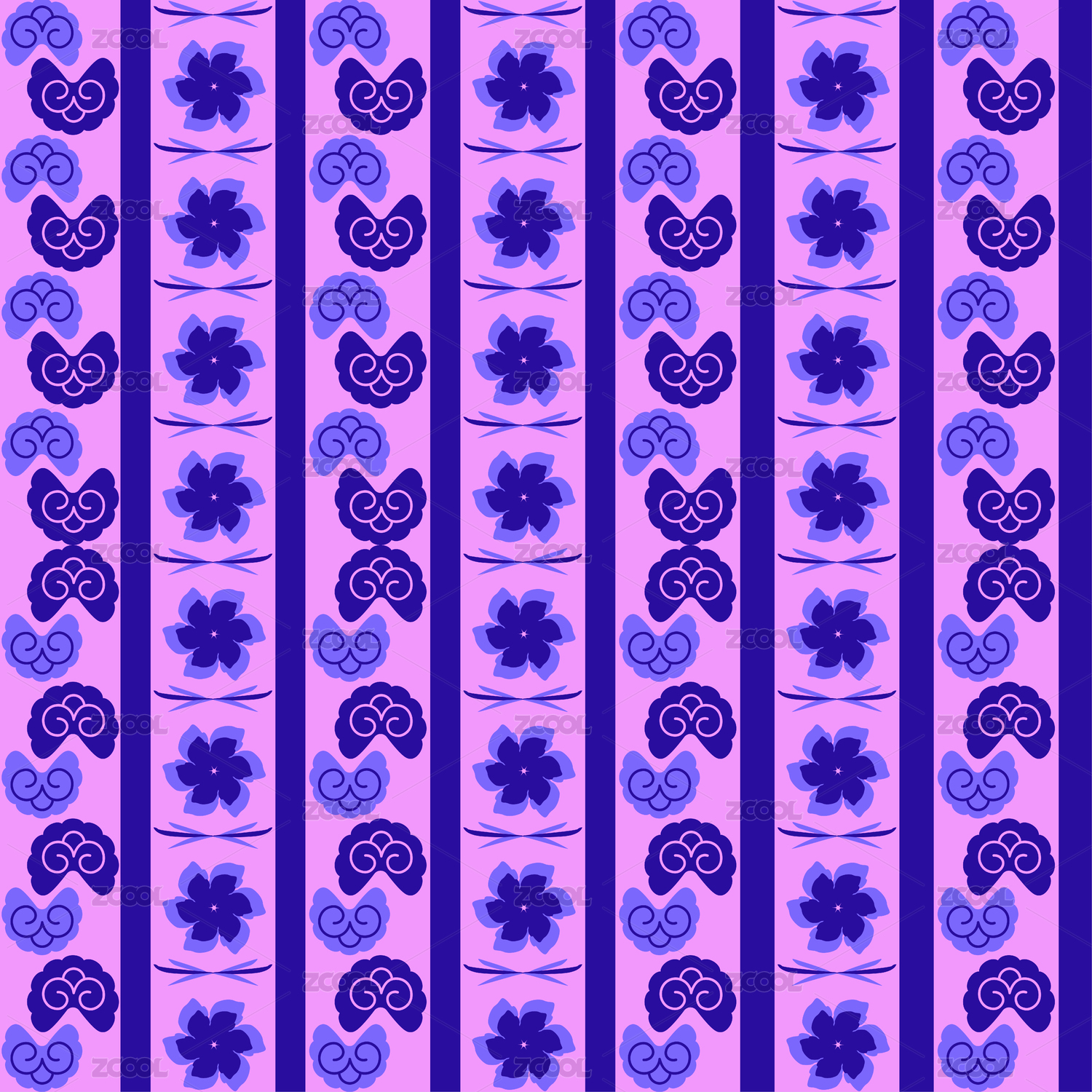 粉紫條紋上藍紫色傳統(tǒng)紋樣重復排列,裝飾畫
