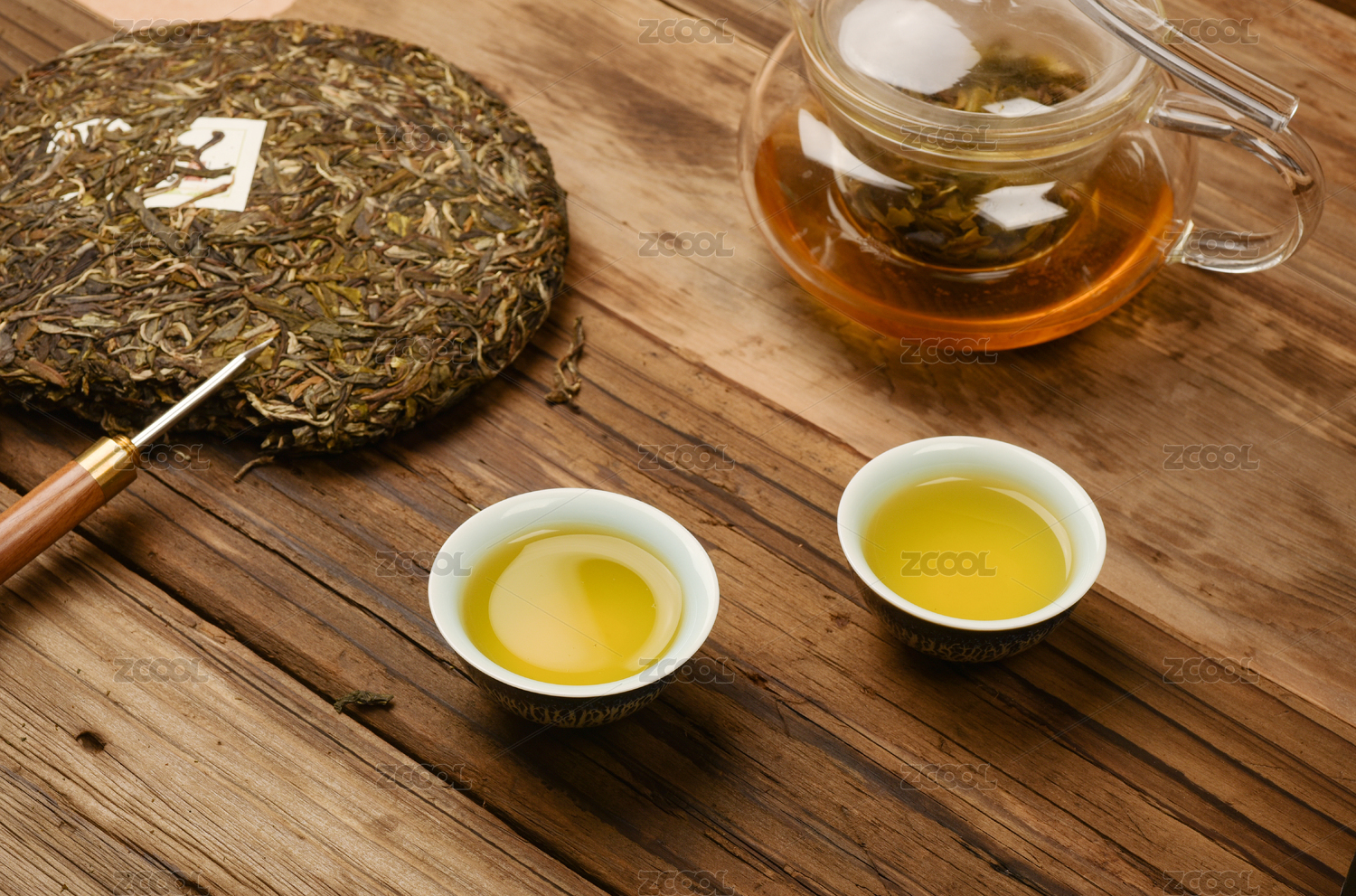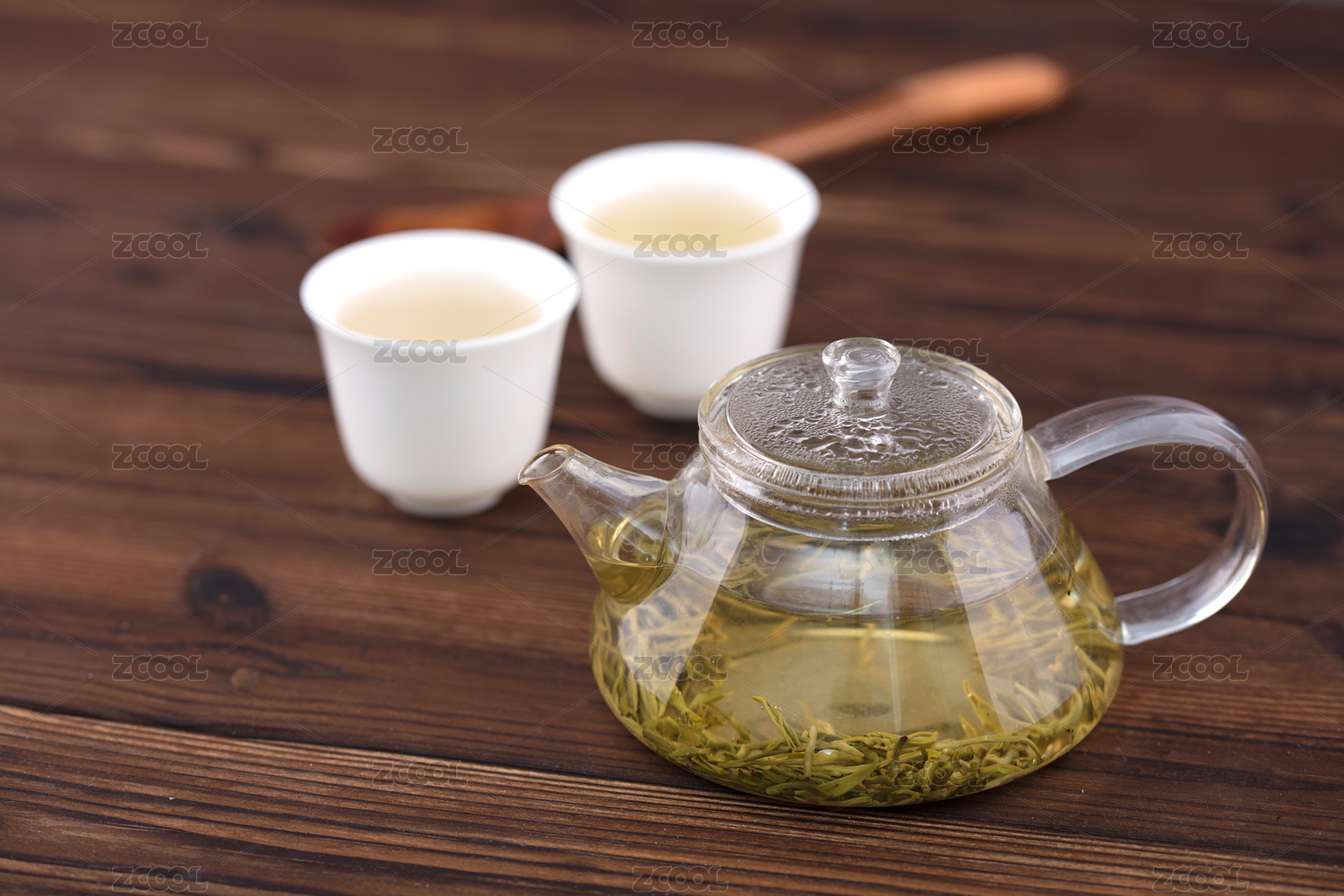 泡好的一壺綠茶和兩個茶杯