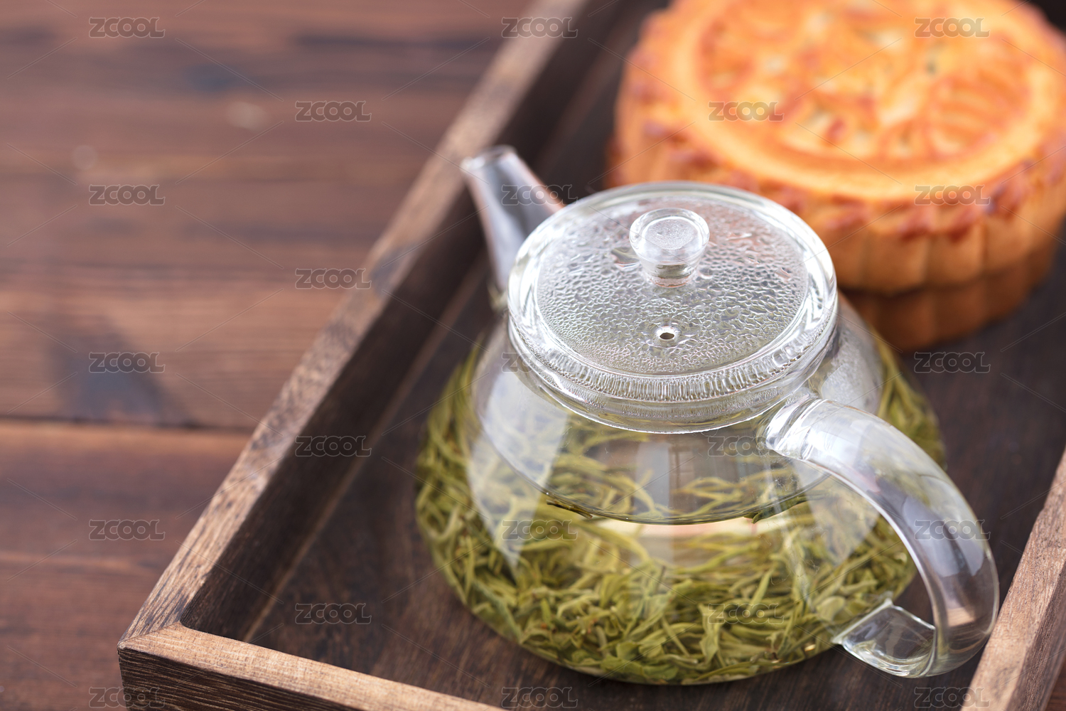 月餅和一壺綠茶
