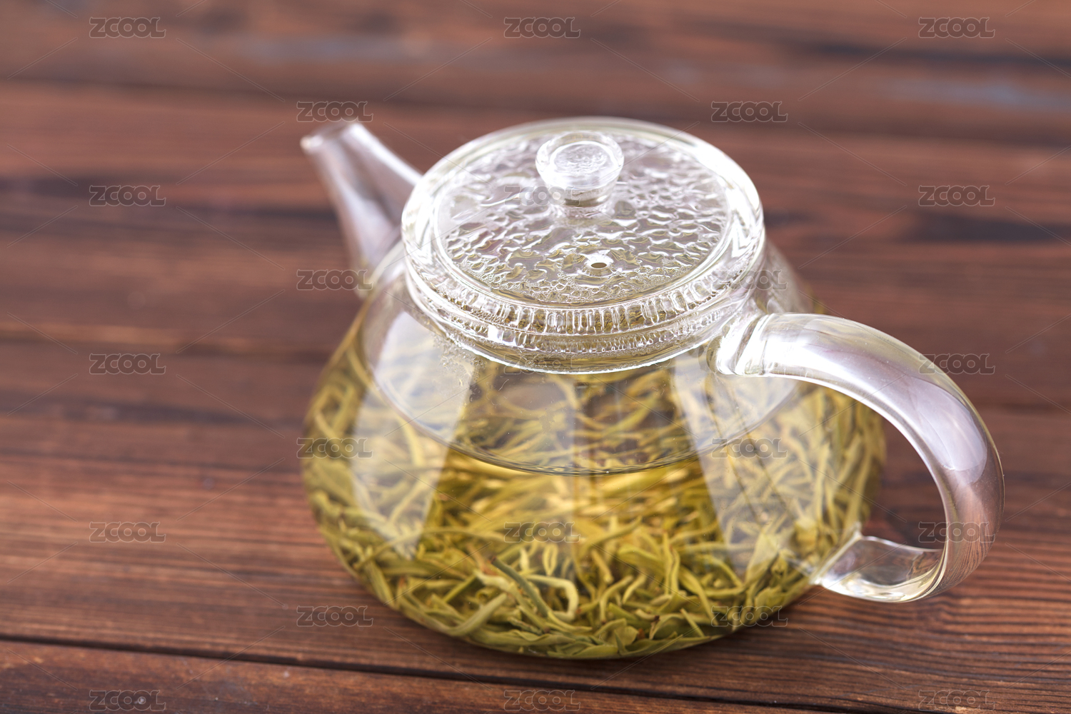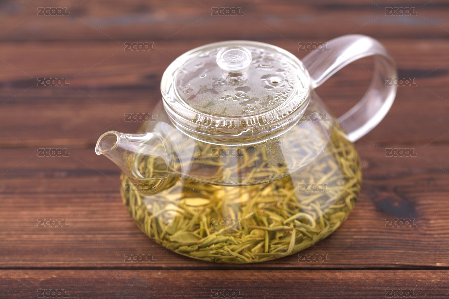 玻璃茶壺泡好的綠茶