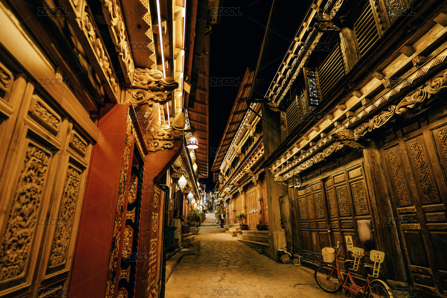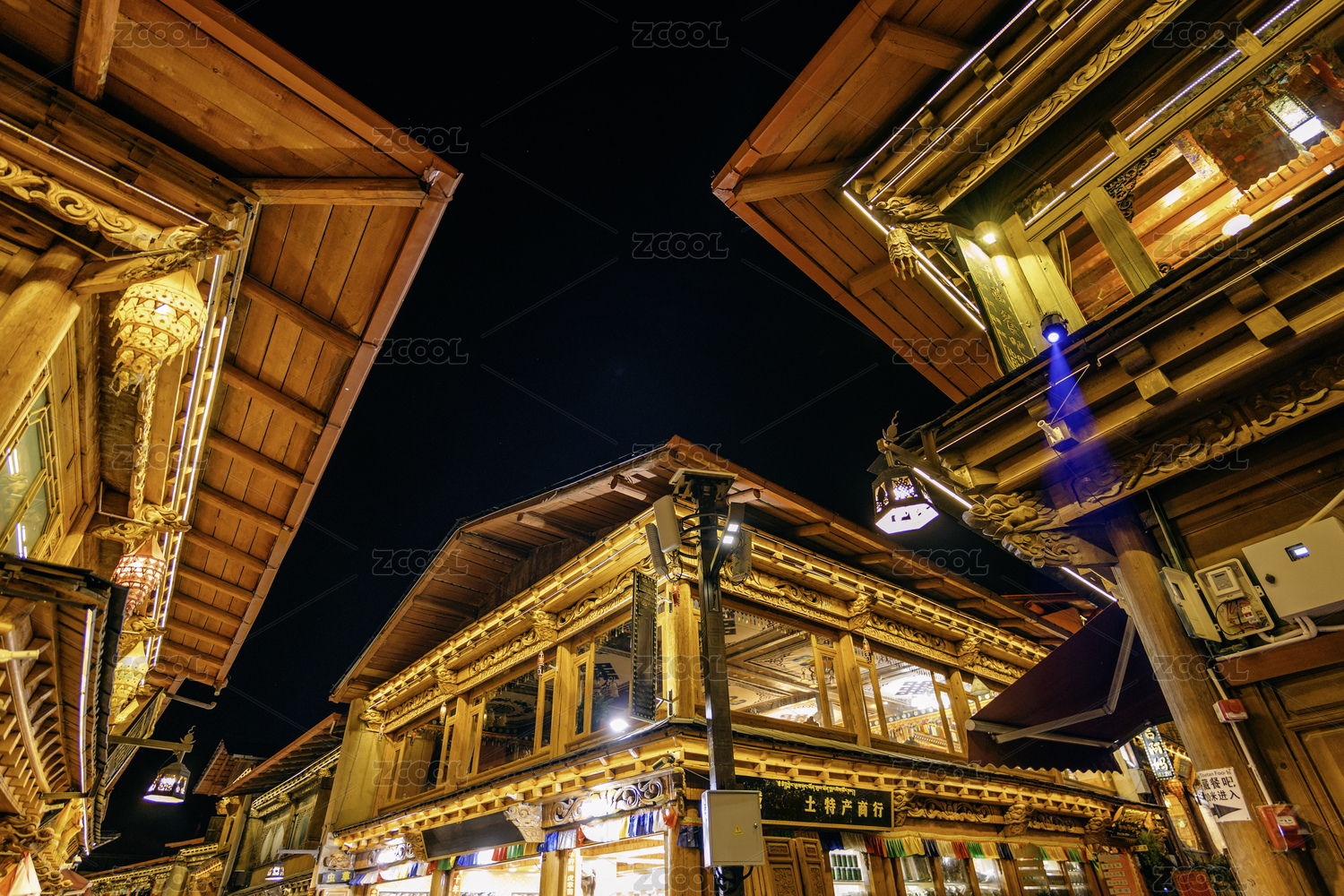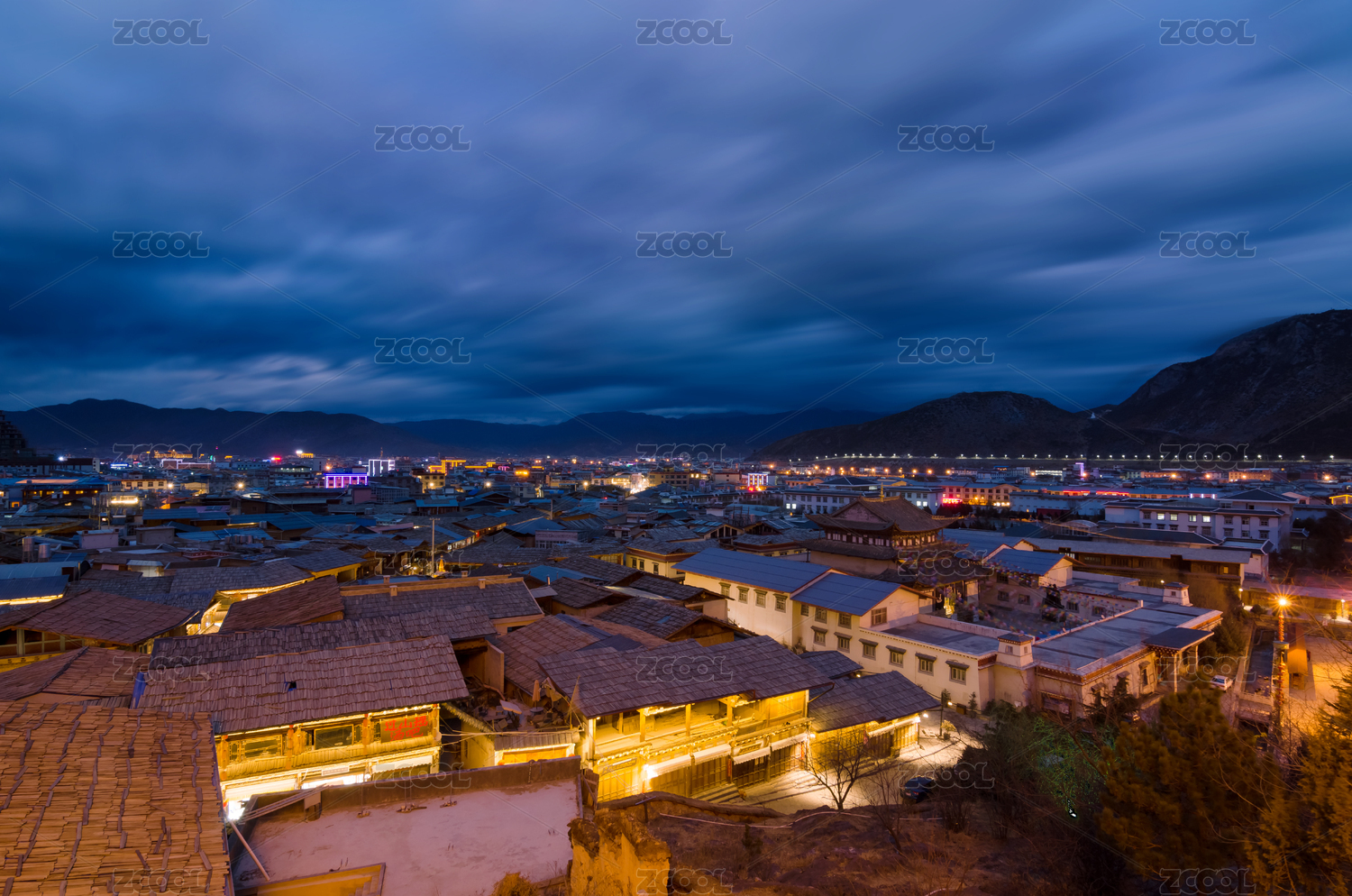 云南香格里拉獨克宗古城建筑夜景
