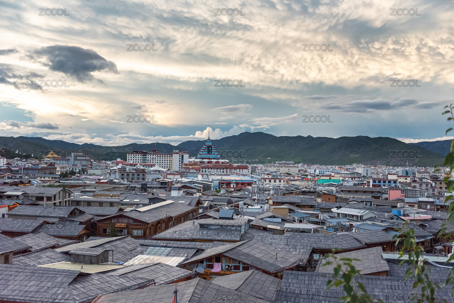中國云南香格里拉月光之城獨克宗古城龜山公園