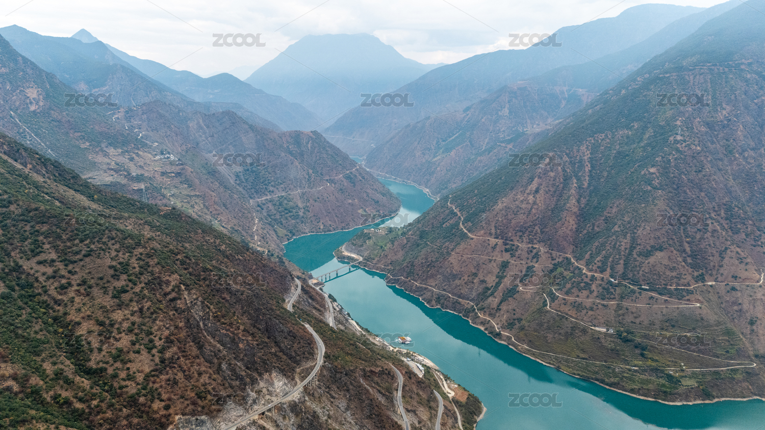 云南昭通巧家縣金沙江大橋與遠(yuǎn)山風(fēng)光