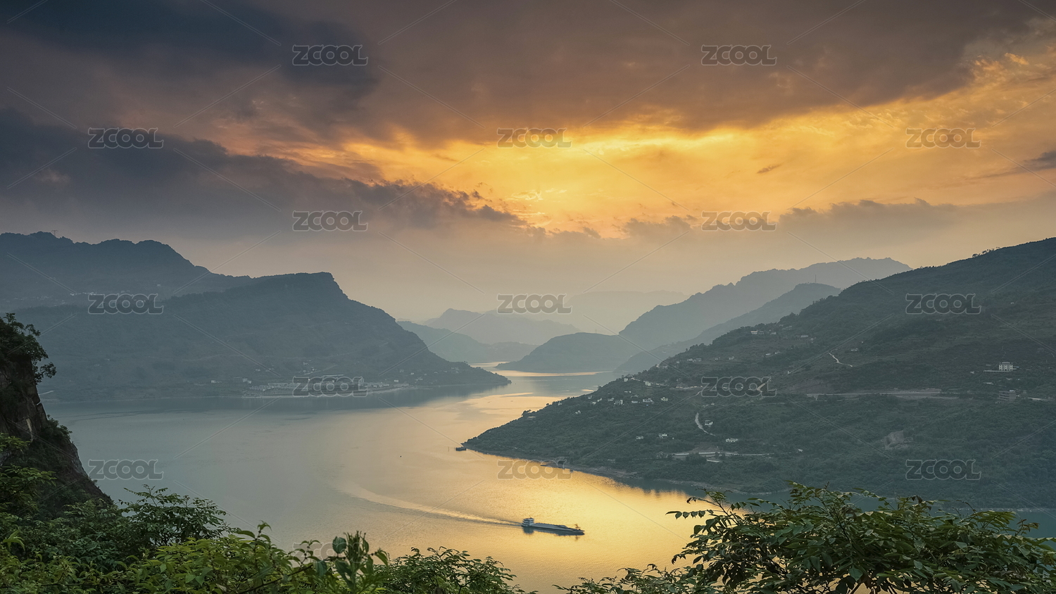 中國四川宜賓金沙江日落晚霞自然風(fēng)景