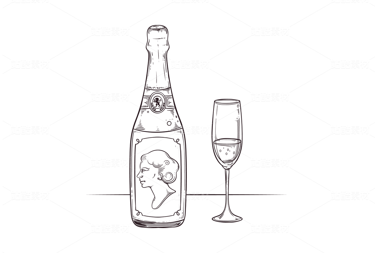 手繪香檳繪圖元素