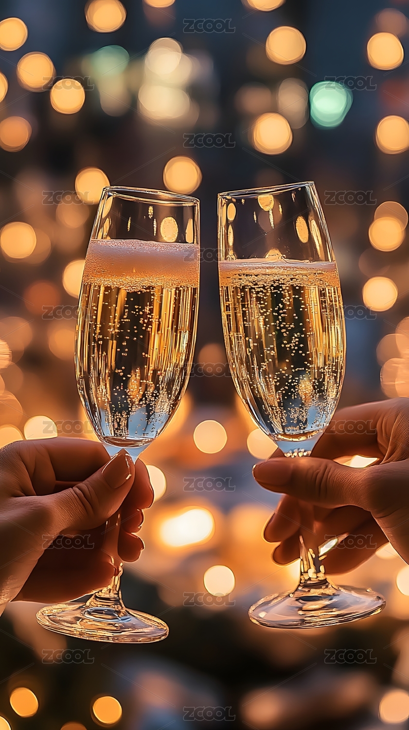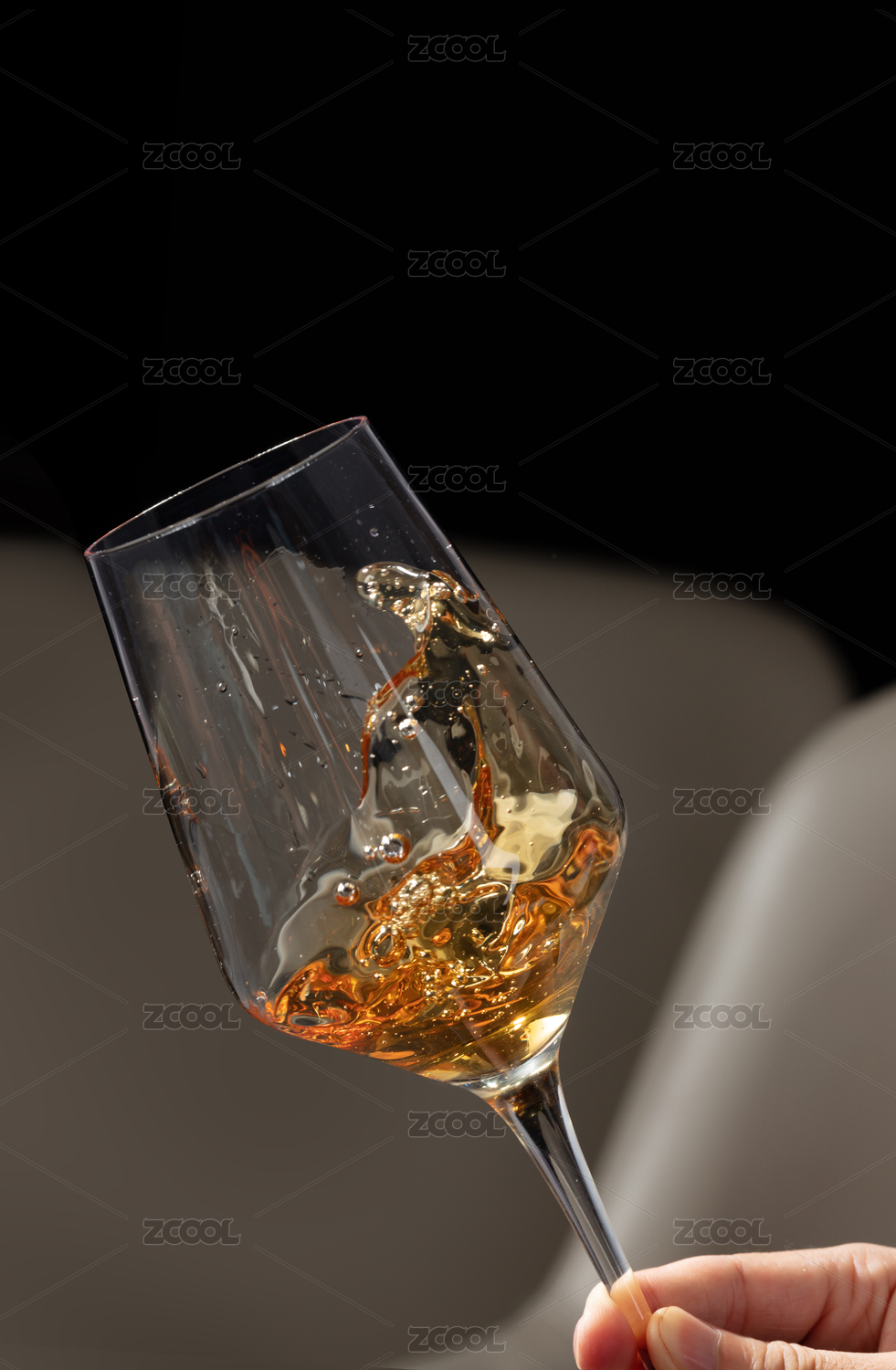 手拿高腳玻璃杯里搖晃的香檳