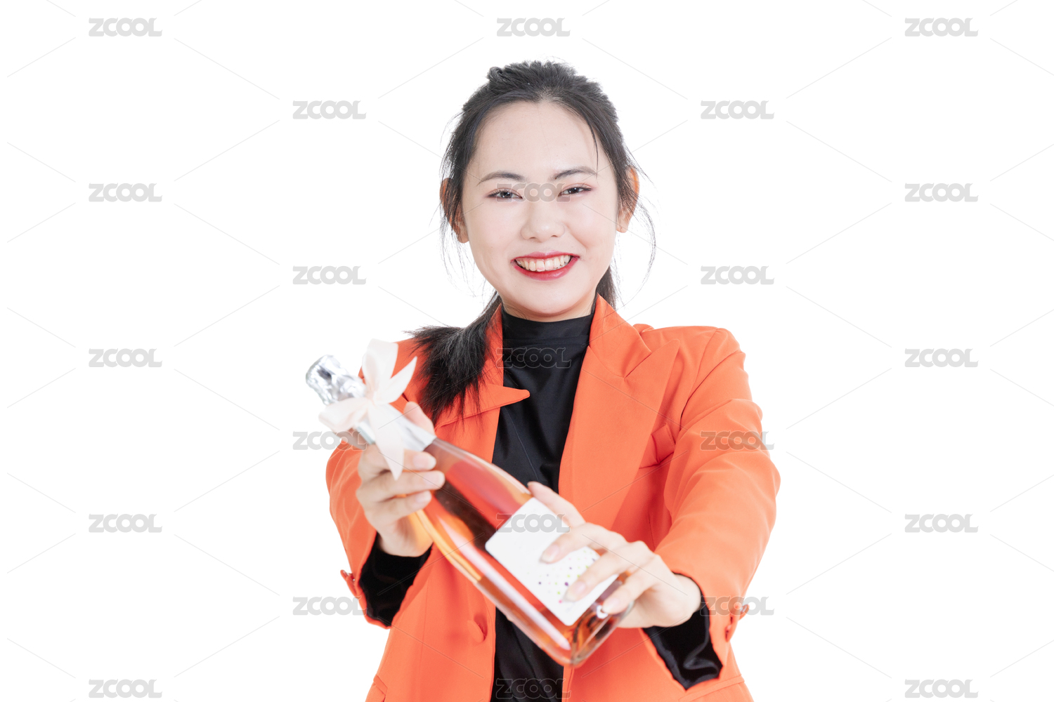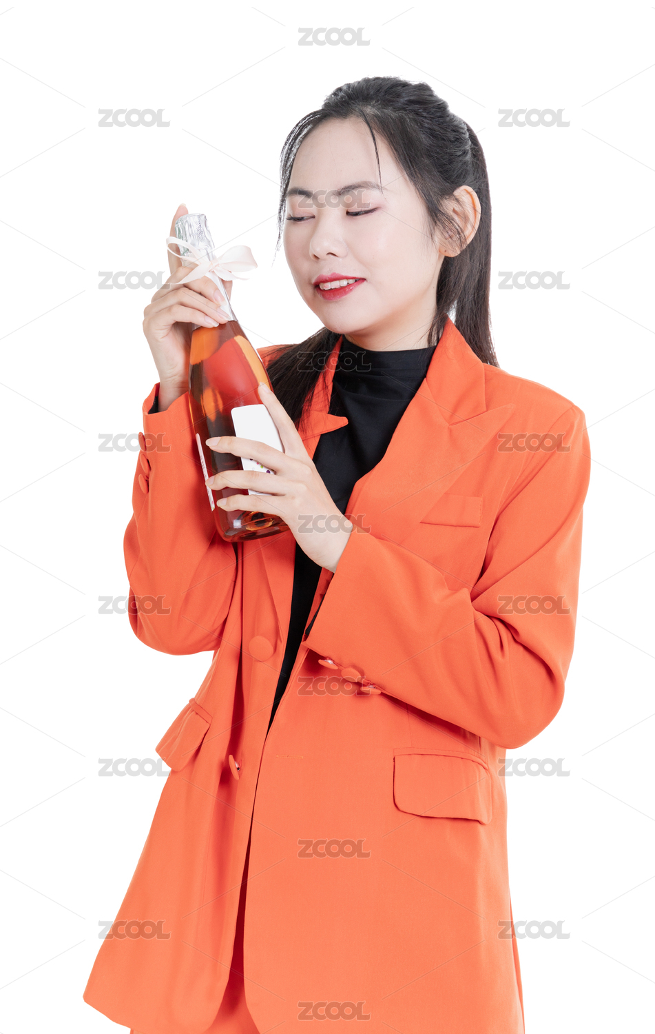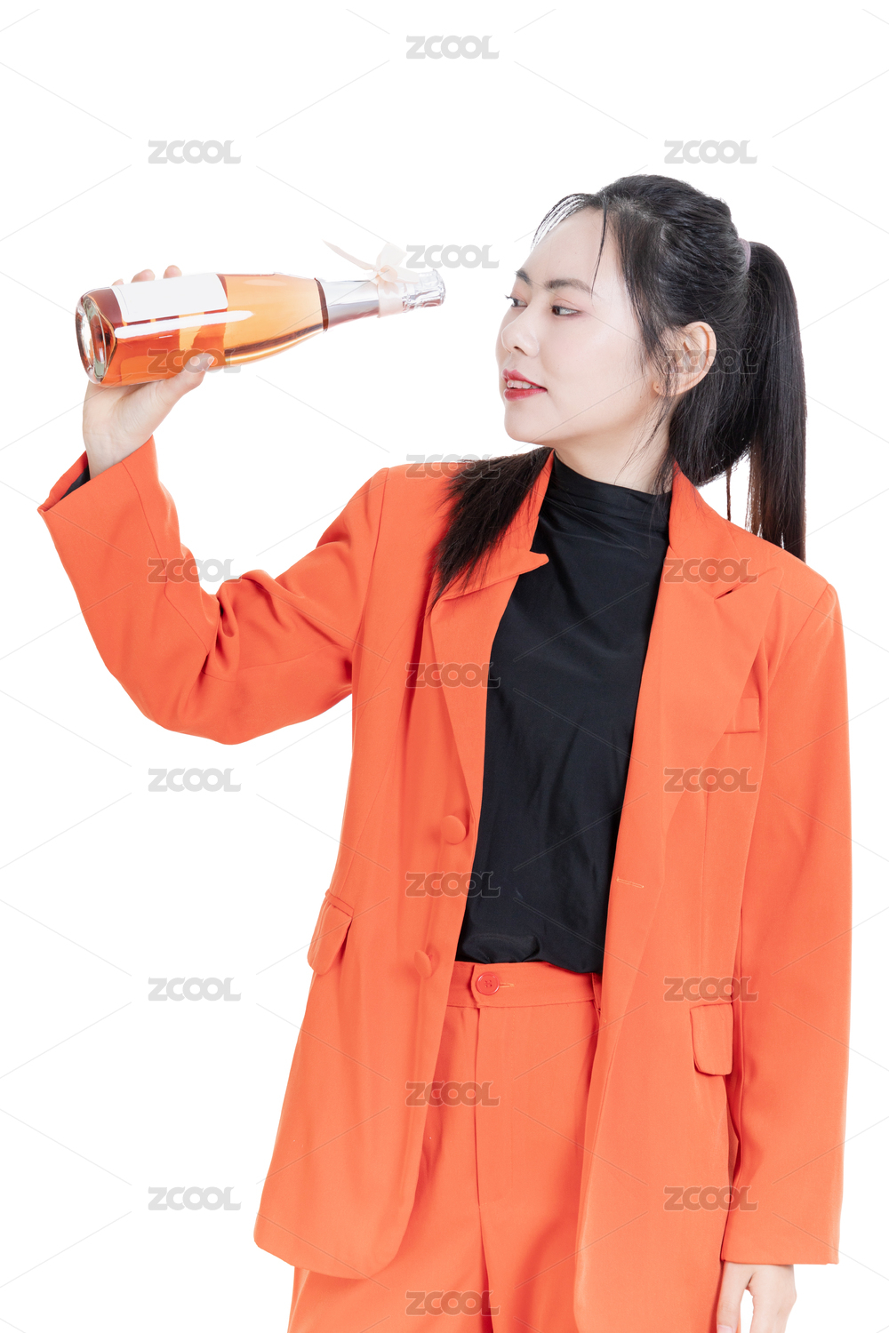 橙色時(shí)尚西裝女性手拿香檳的年輕女性形象