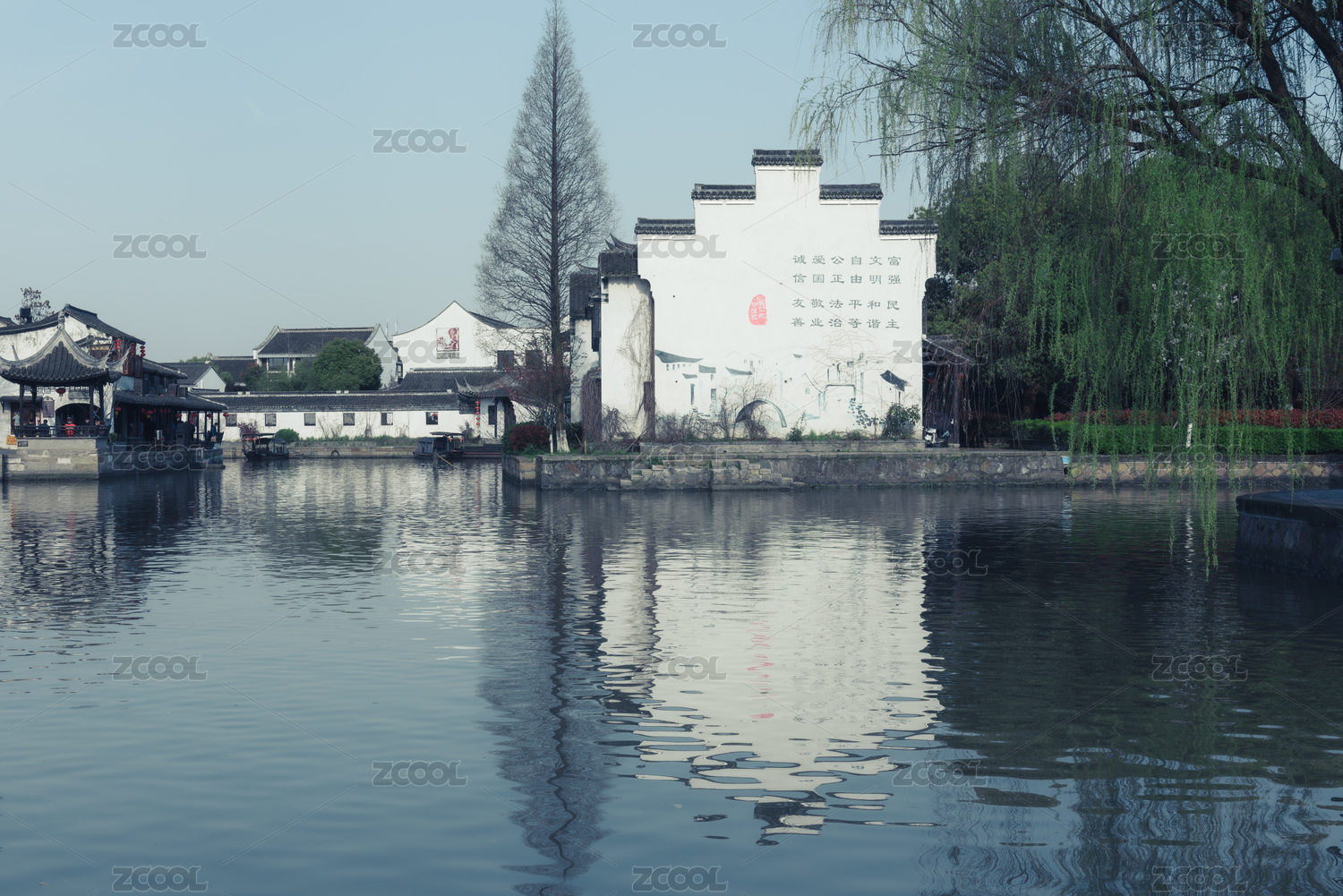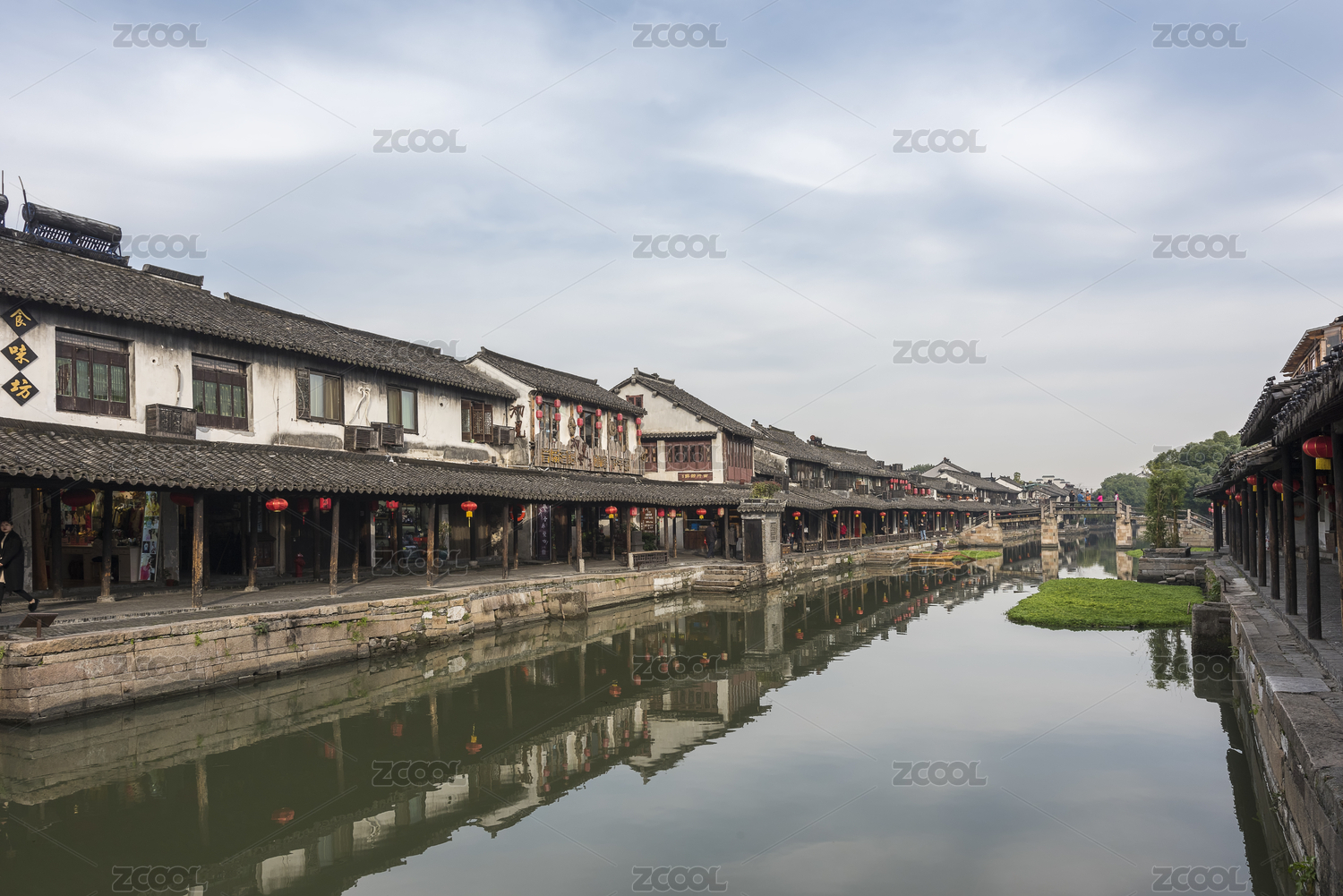 浙江西塘古鎮(zhèn)的徽派建筑在水中的倒影