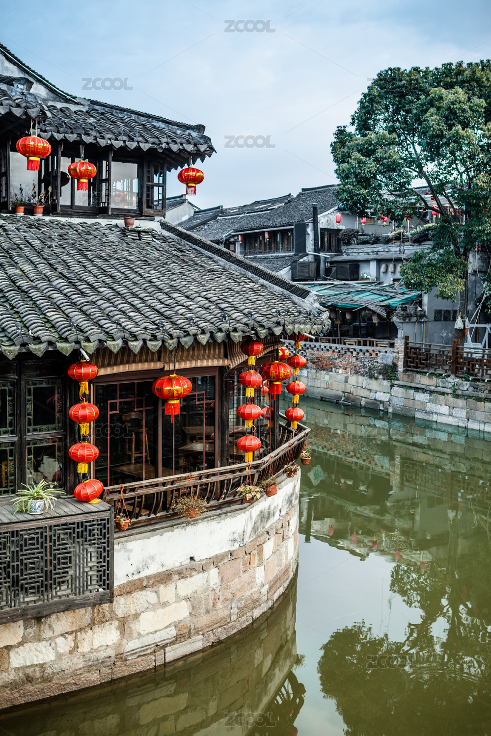 中國浙江嘉興嘉善西塘古鎮(zhèn)老建筑臨水民居