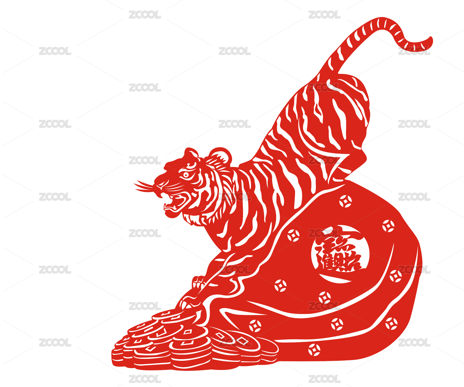 2022虎年春節(jié)剪紙虎招財虎門窗貼