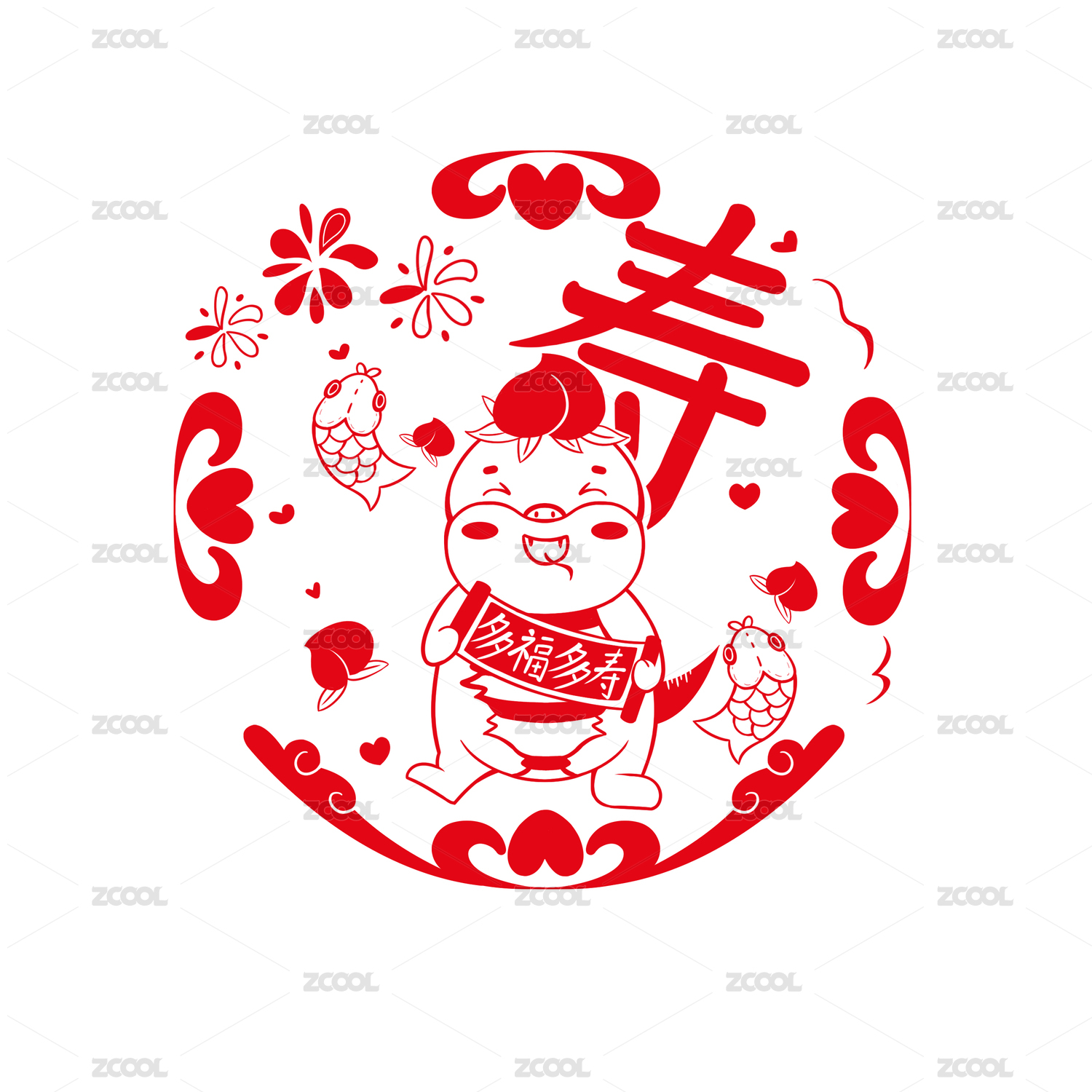 春節(jié)蛇年祿字窗貼窗花插畫元素